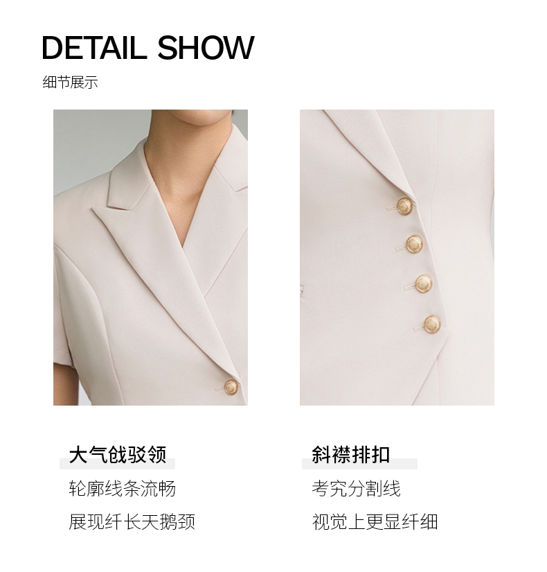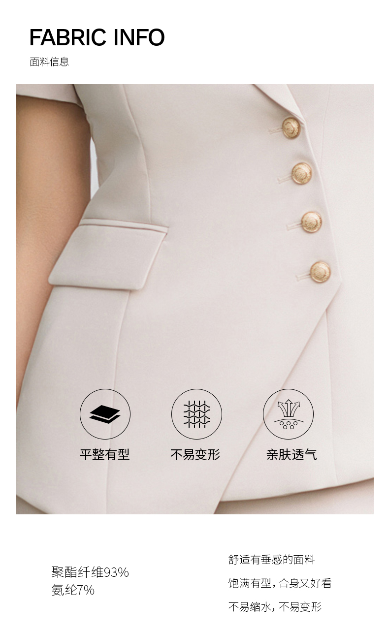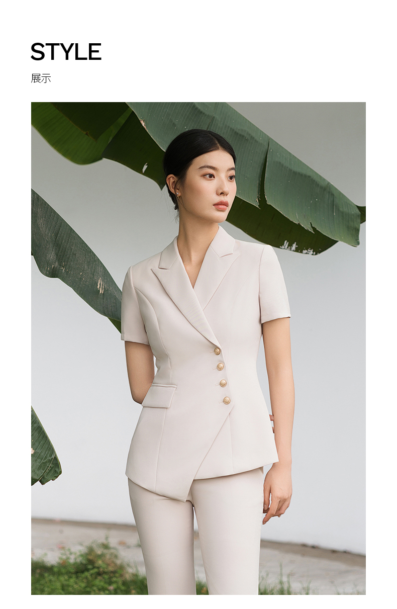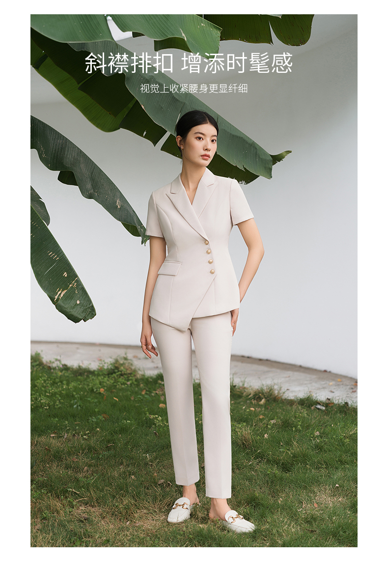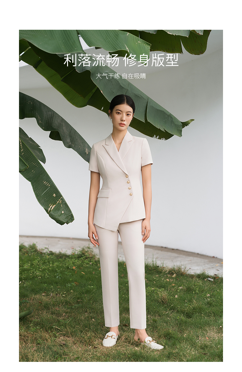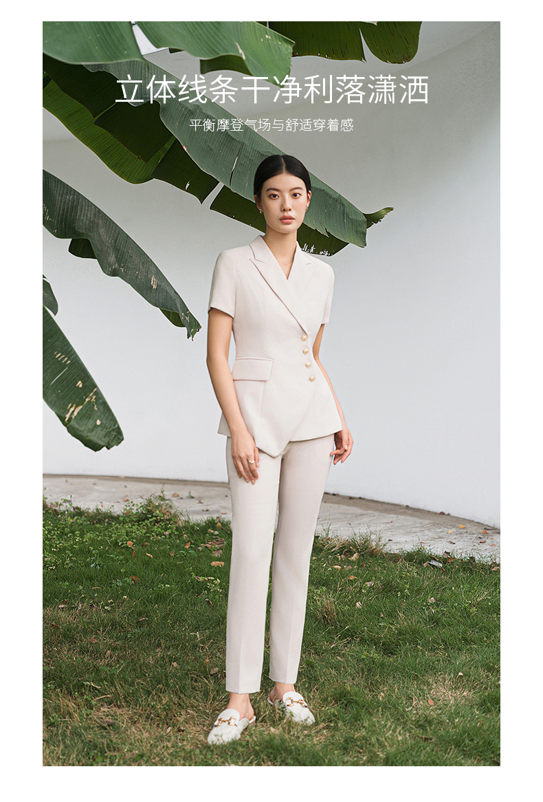 IWY/短袖西装套装杏色修身高级设计感职业商务通勤面试正装工作服C10409+P10409
