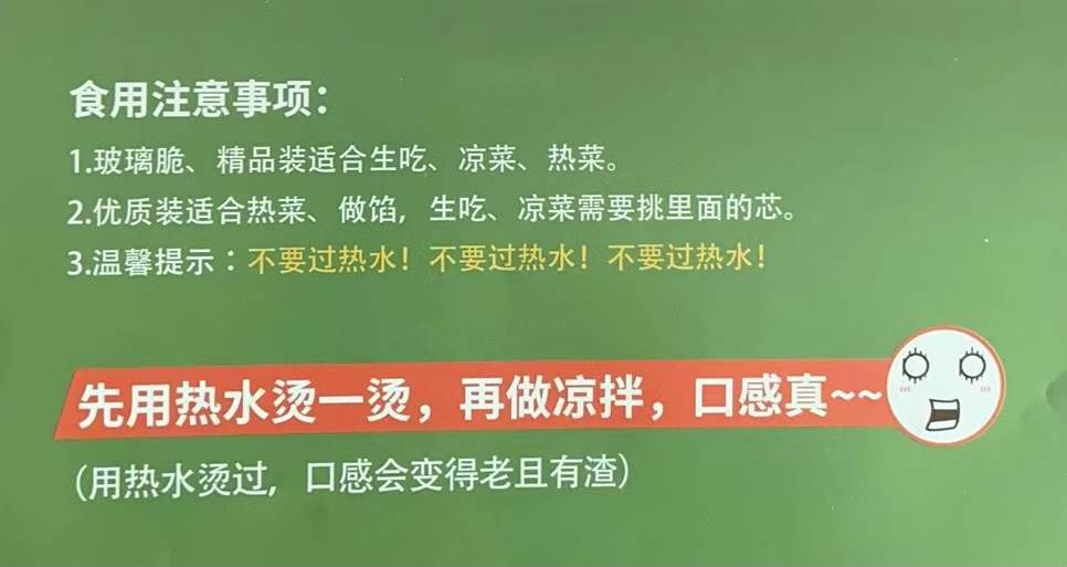 1. 出现这样反馈老的问题有两个原因, 一是用热水焯过;二是买家庭装用外面的粗茎直接生食;
