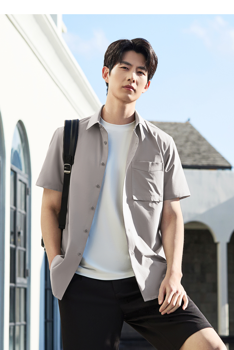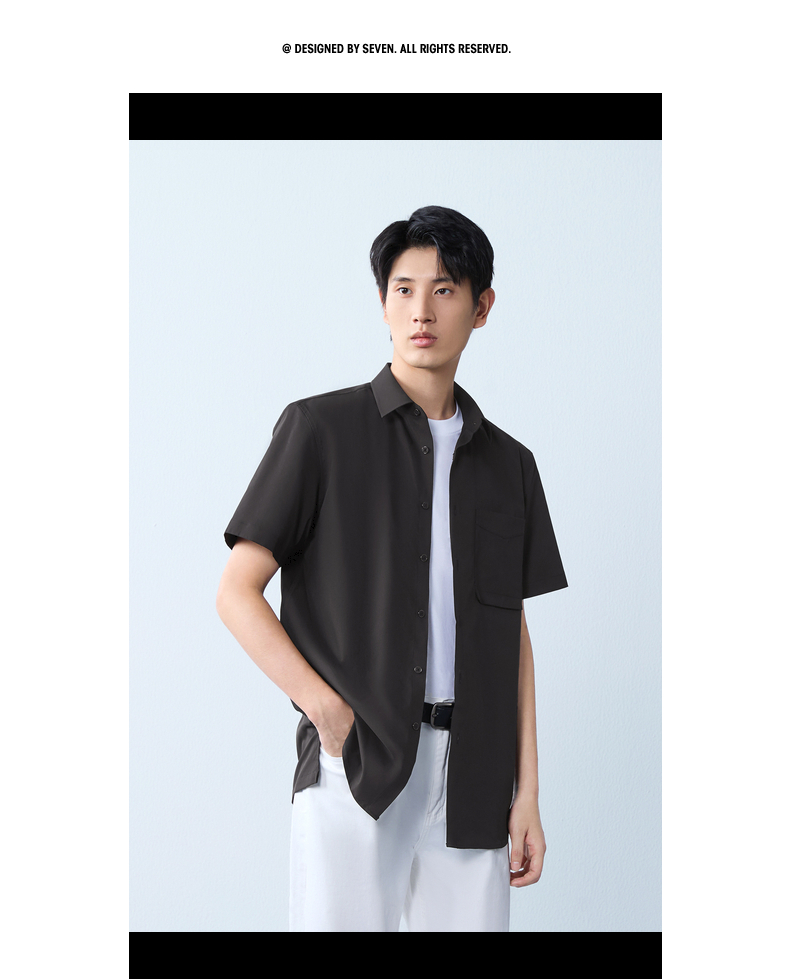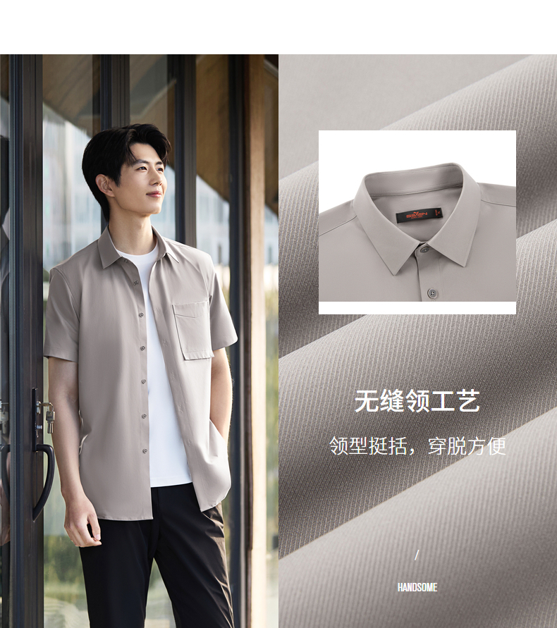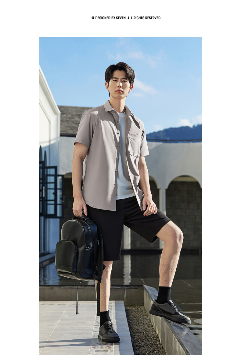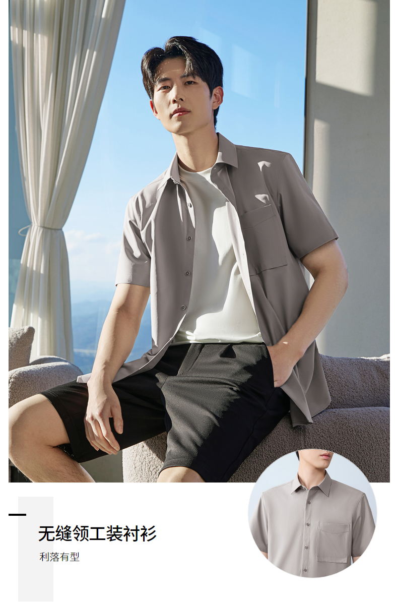 【无缝翻领/工装】柒牌短袖衬衫2026夏季新款休闲商务中青年上衣130A70140