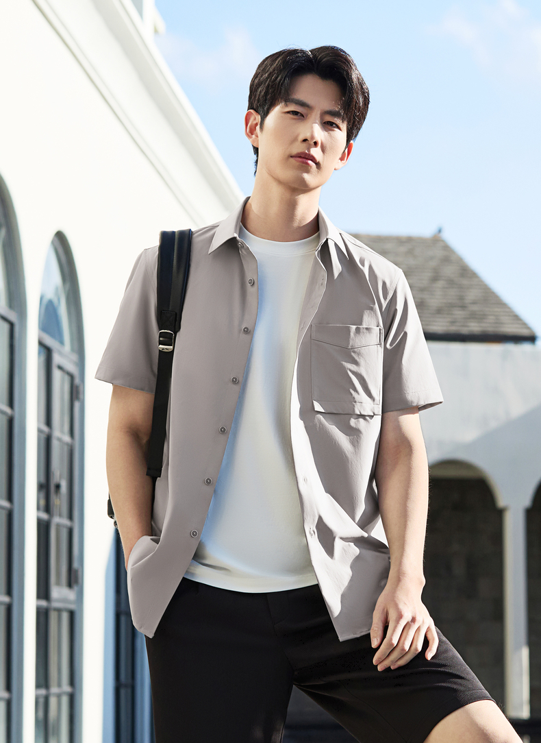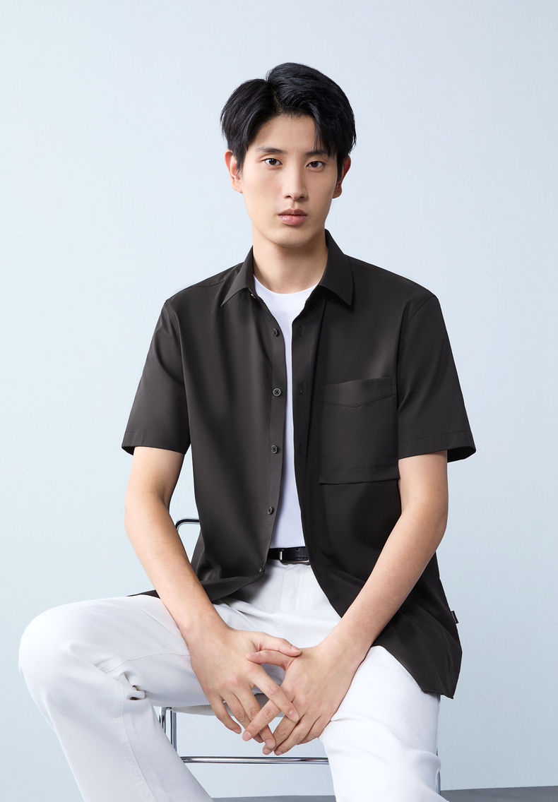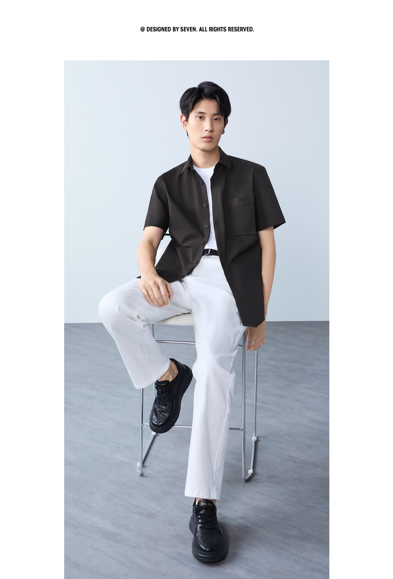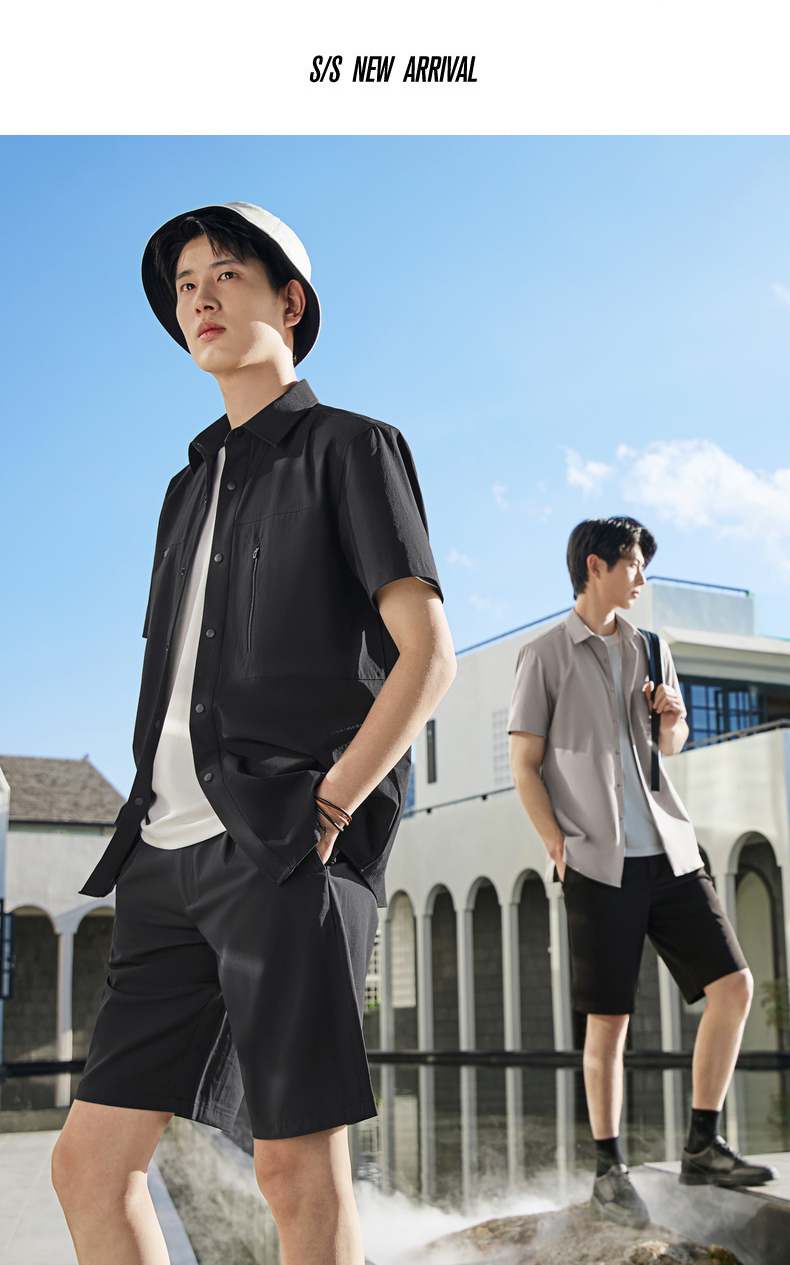 【无缝翻领/工装】柒牌短袖衬衫2026夏季新款休闲商务中青年上衣130A70140