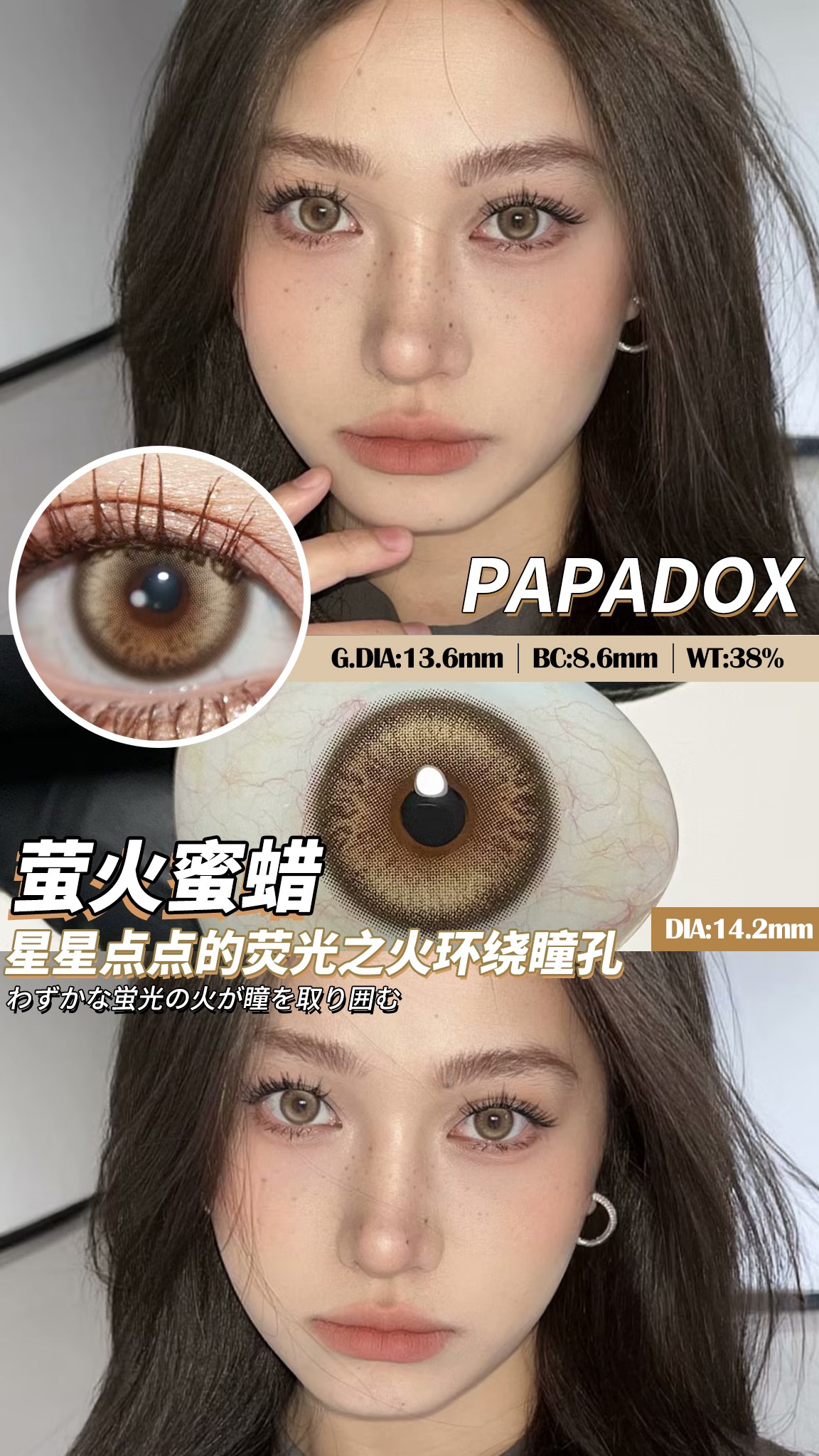 papadox月抛 萤火蜜蜡 小混血棕色 14.2mm 一盒一个度数