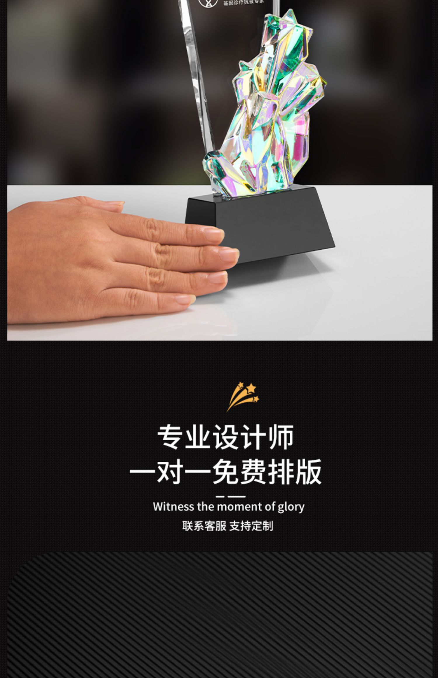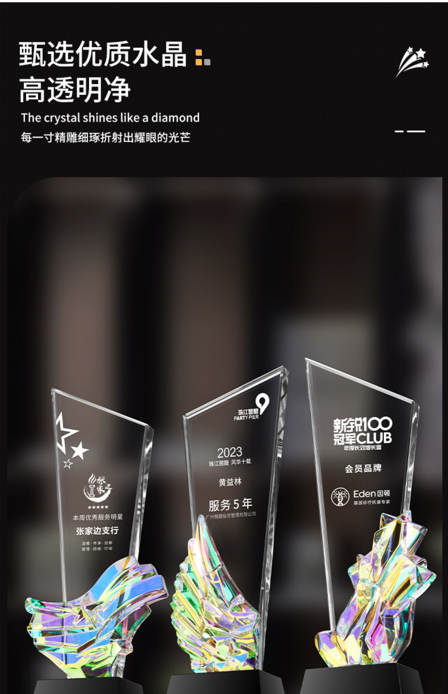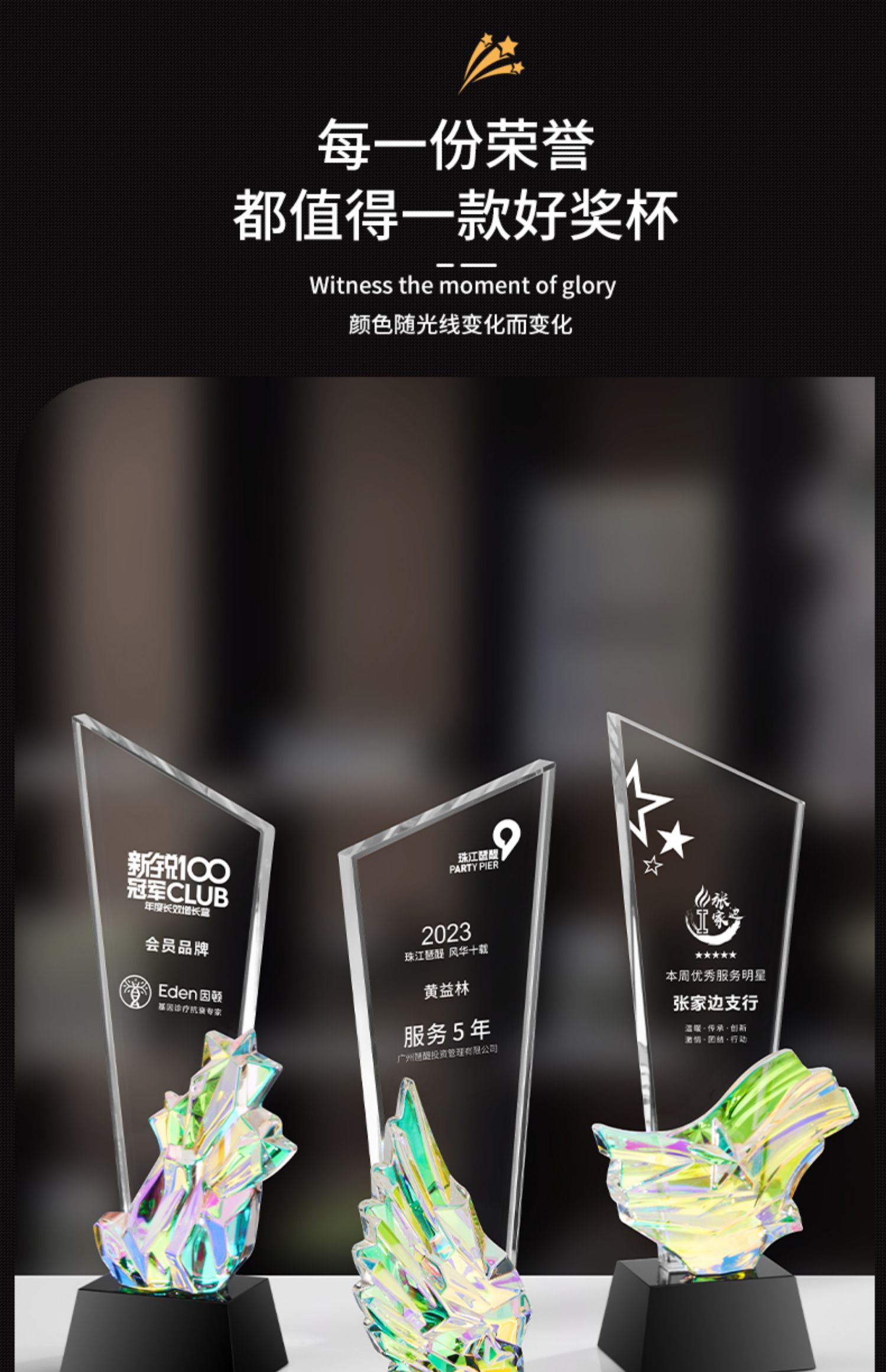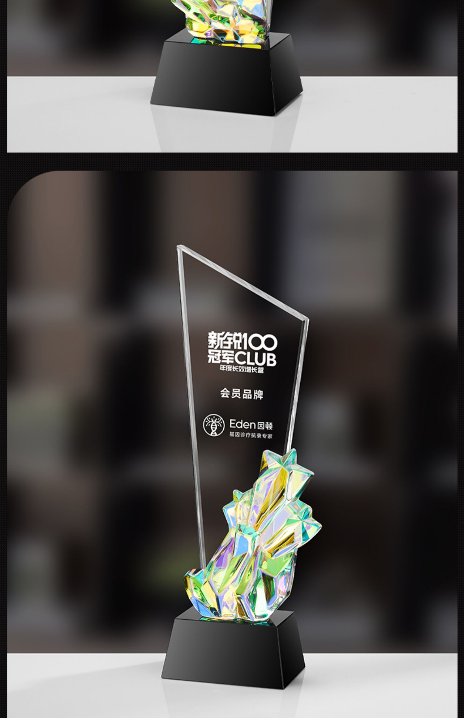 新款变色炫彩K9水晶奖杯定制公司周年销售冠军年会颁奖纪念品定做