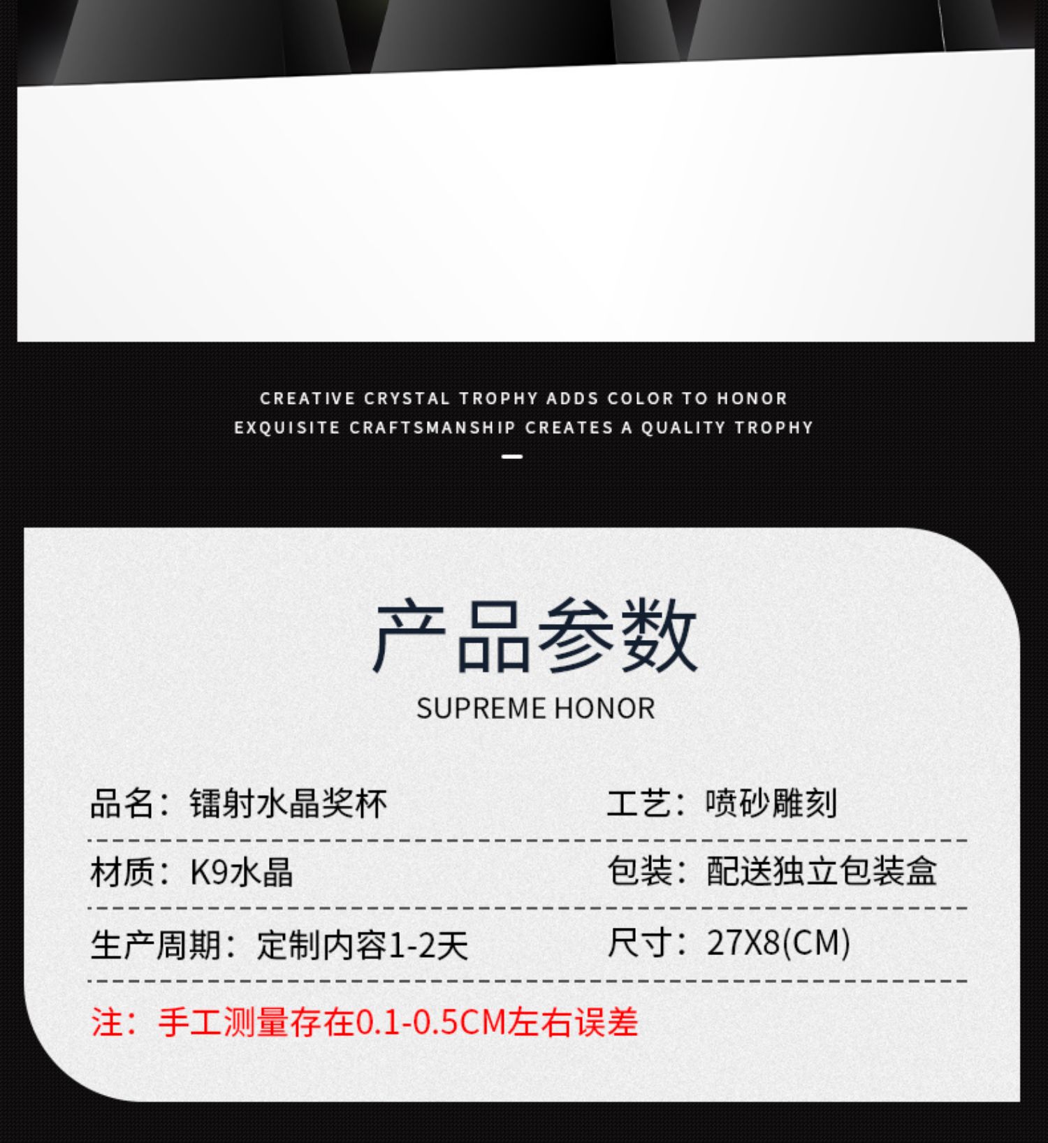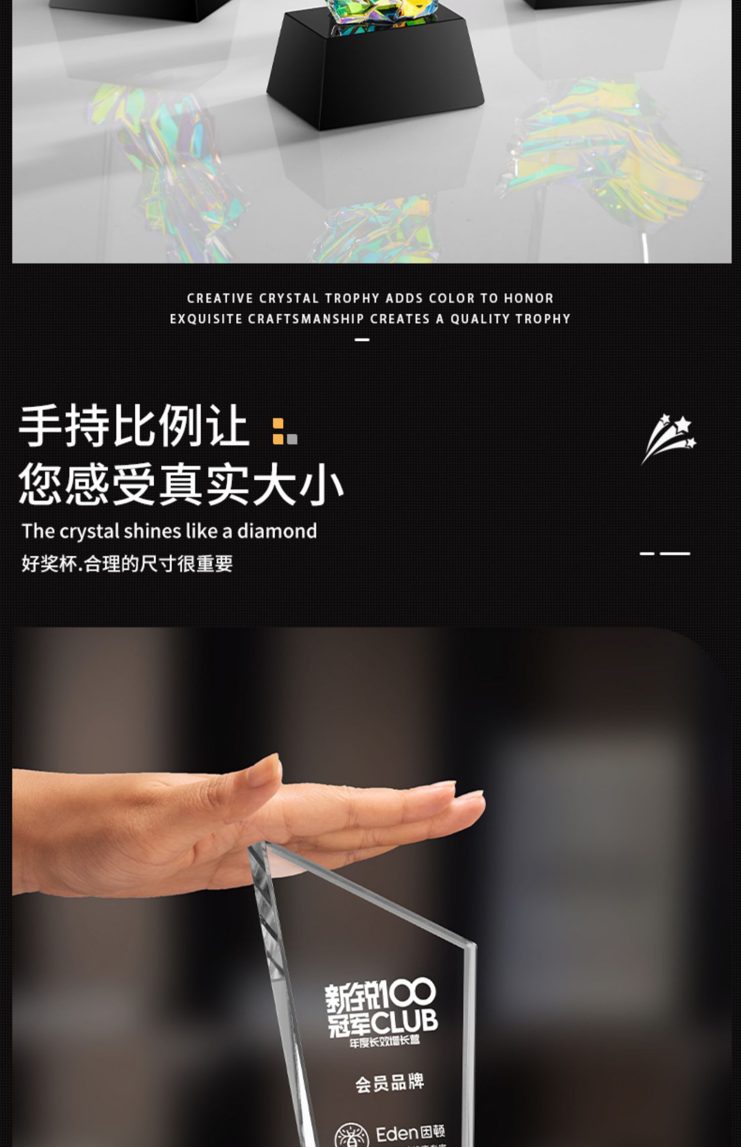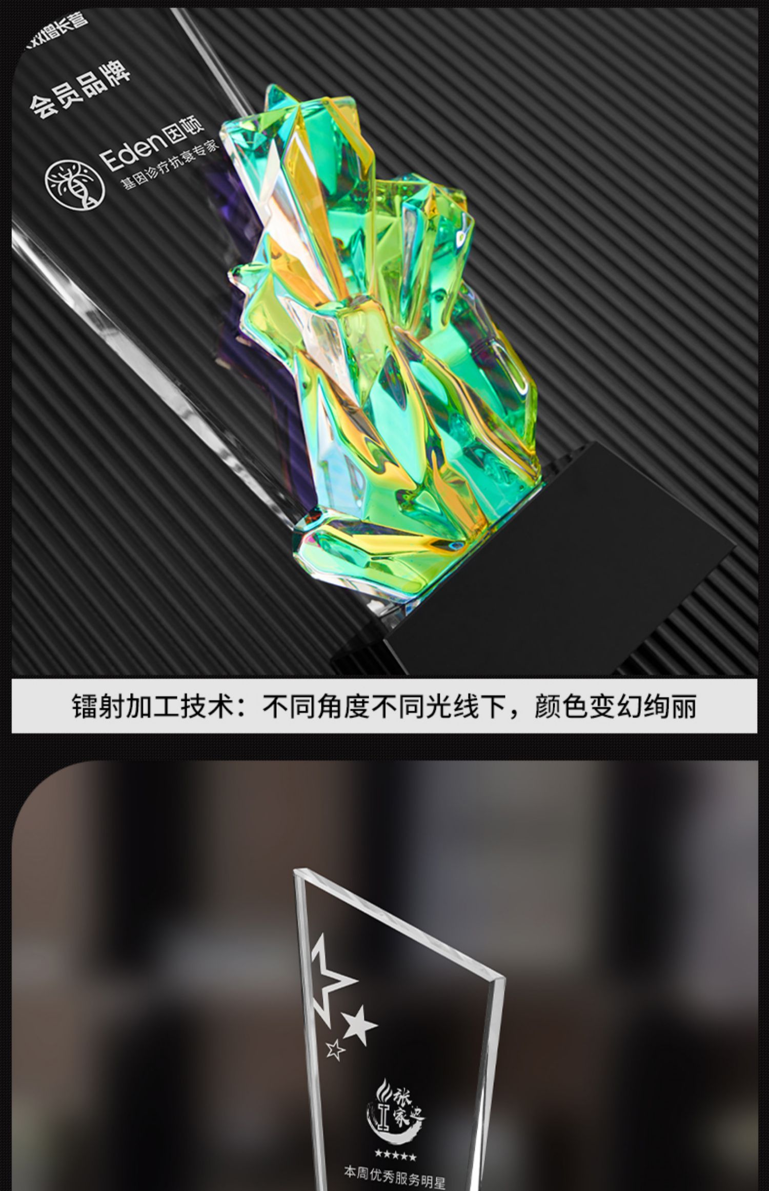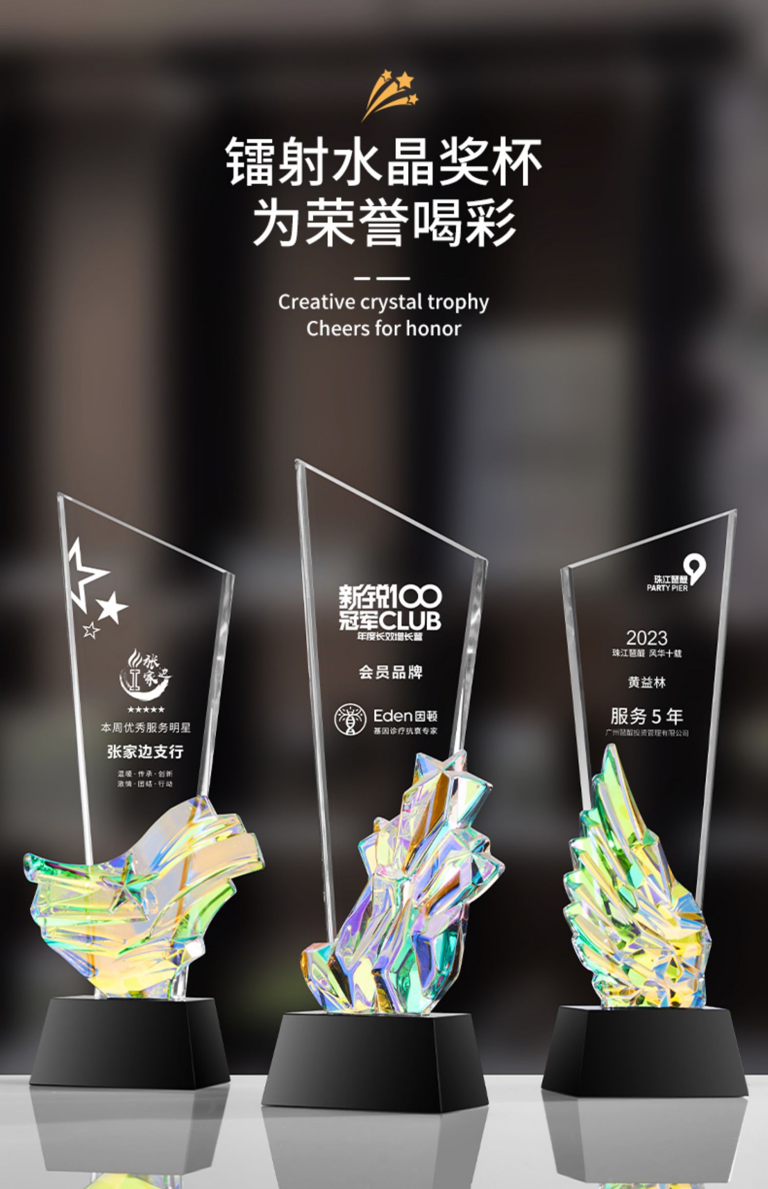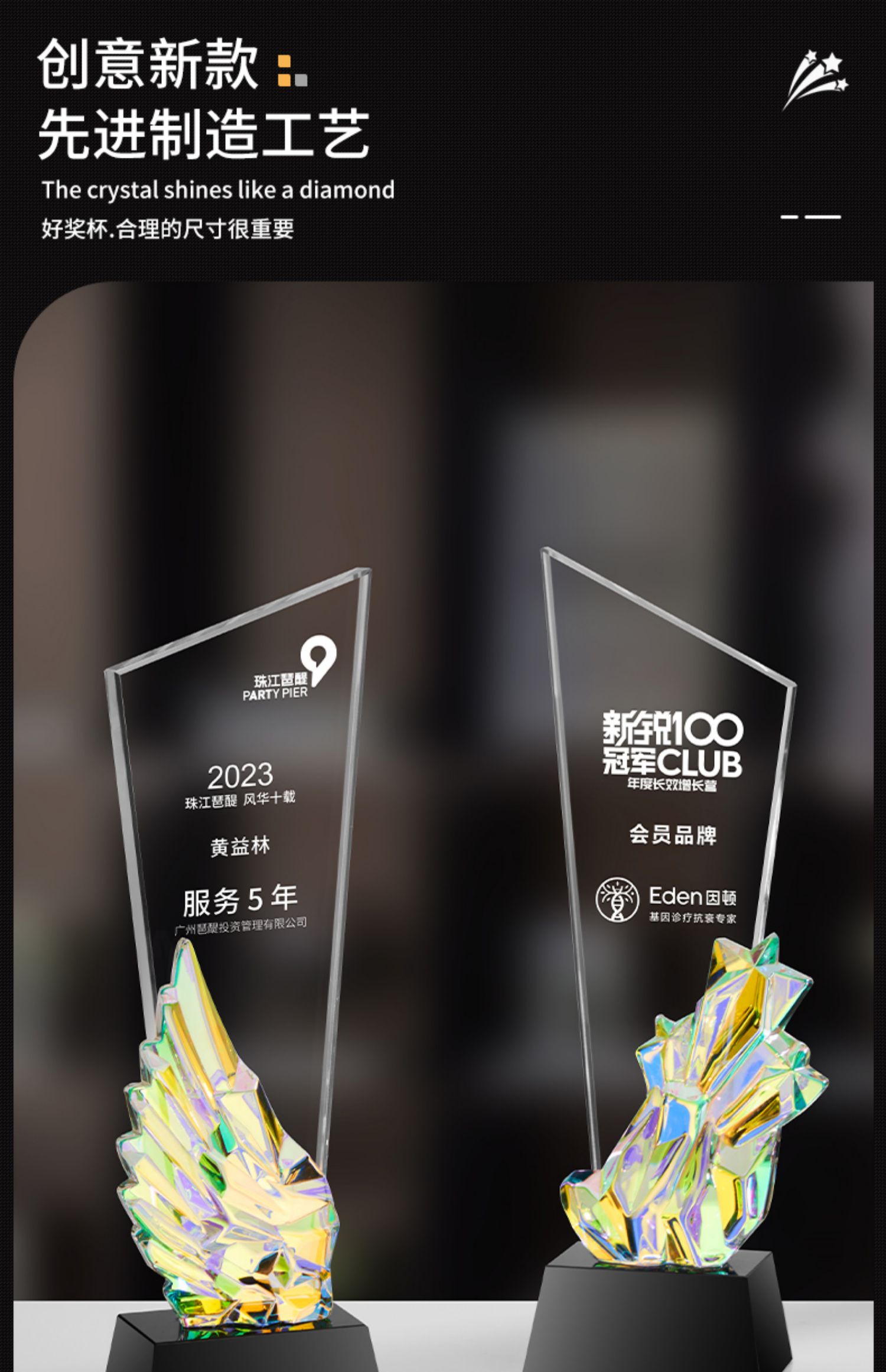 新款变色炫彩K9水晶奖杯定制公司周年销售冠军年会颁奖纪念品定做