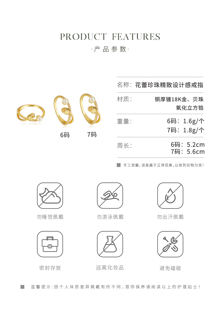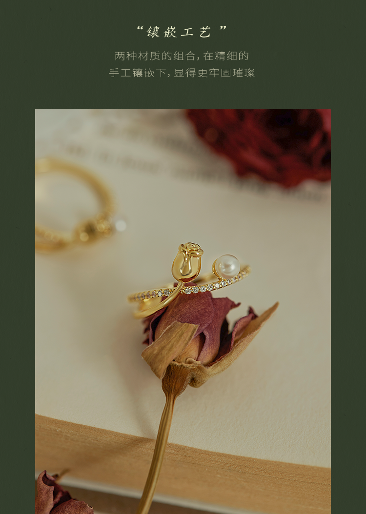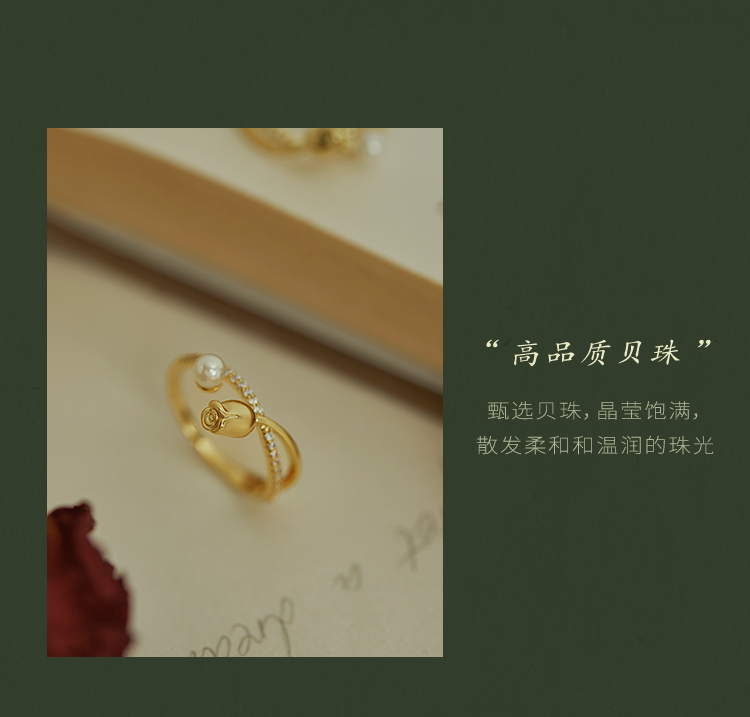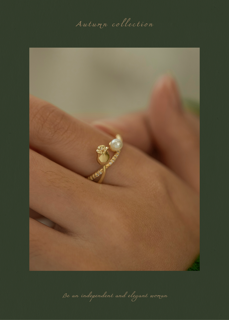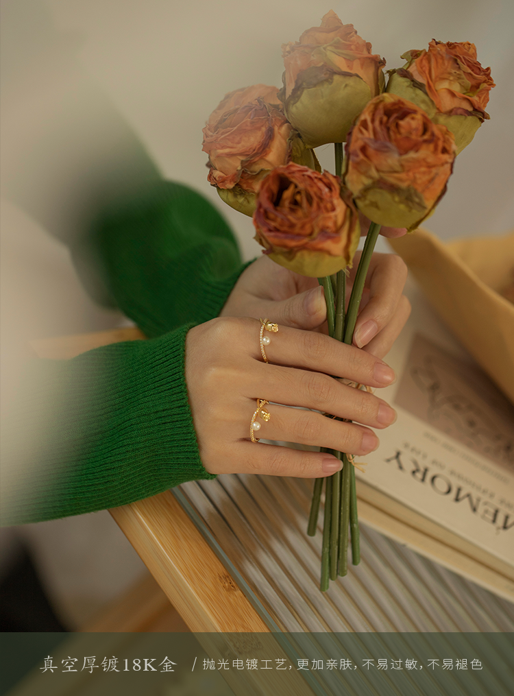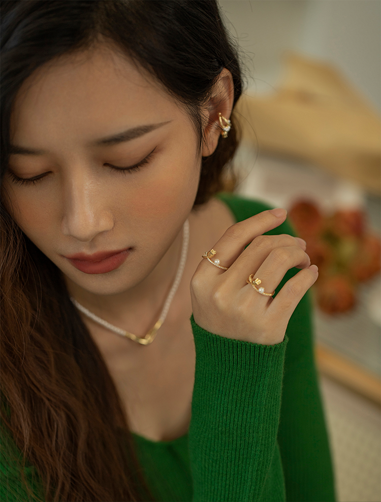 Oflye潮流饰品 时尚花蕾珍珠设计感戒指新款小众感食指戒