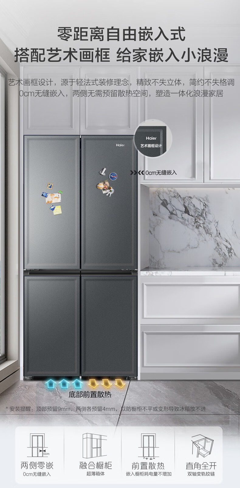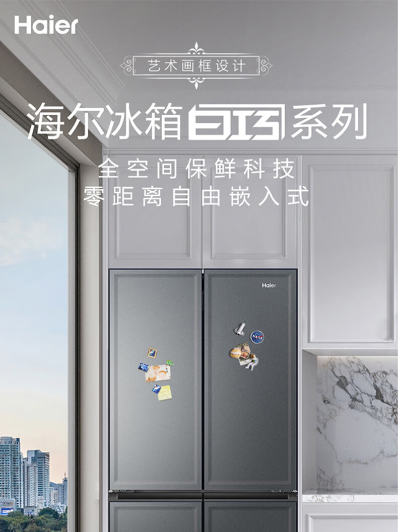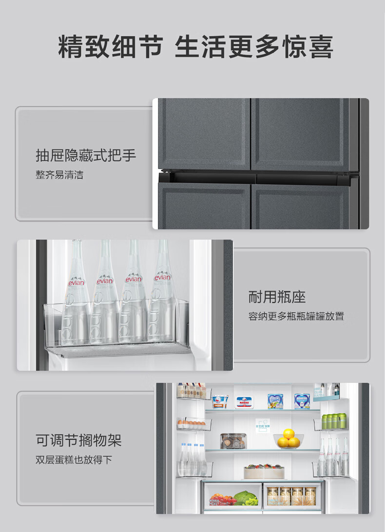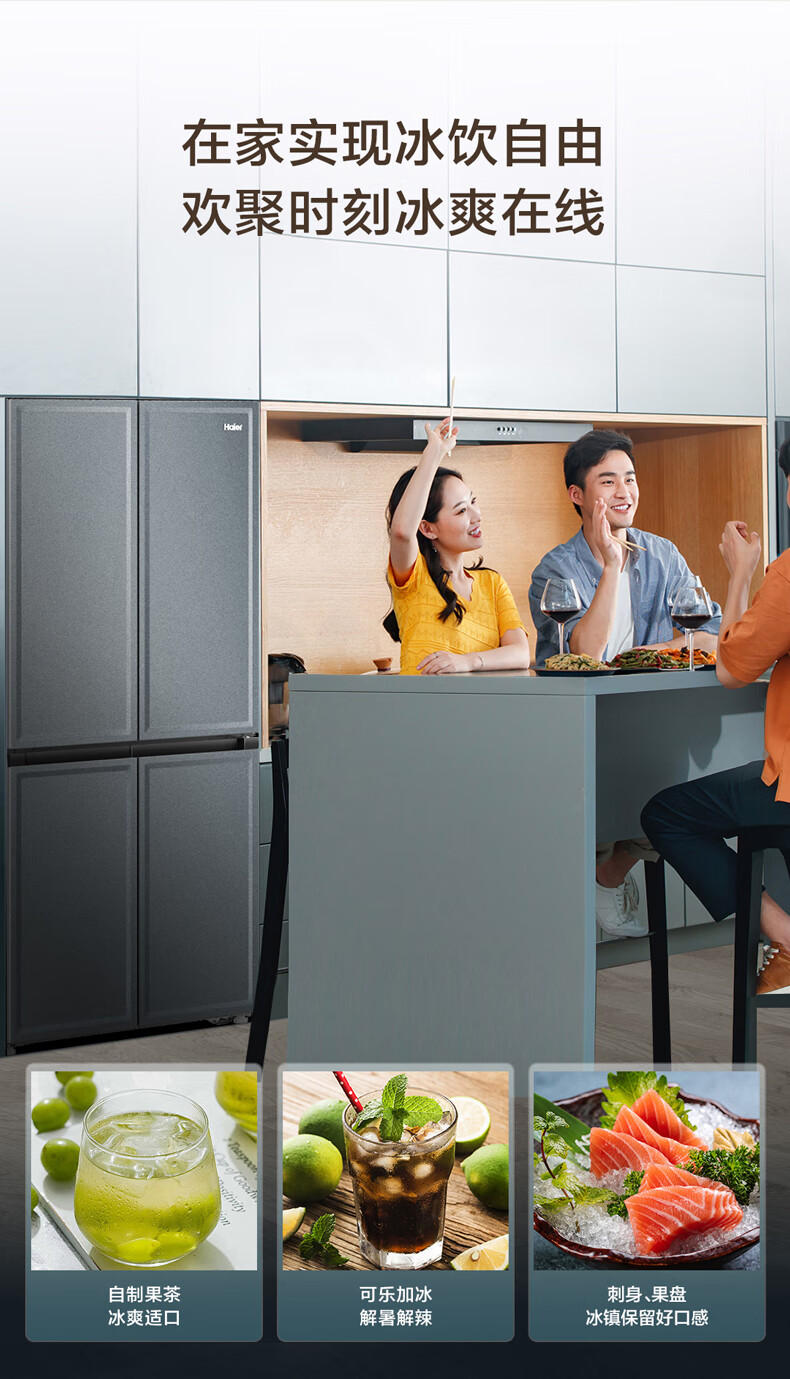 海尔(Haier)460升全空间保鲜零距离自由嵌入式快速制冰百变空间T型门冰箱BCD-460WGHTD14G9U1板岩灰