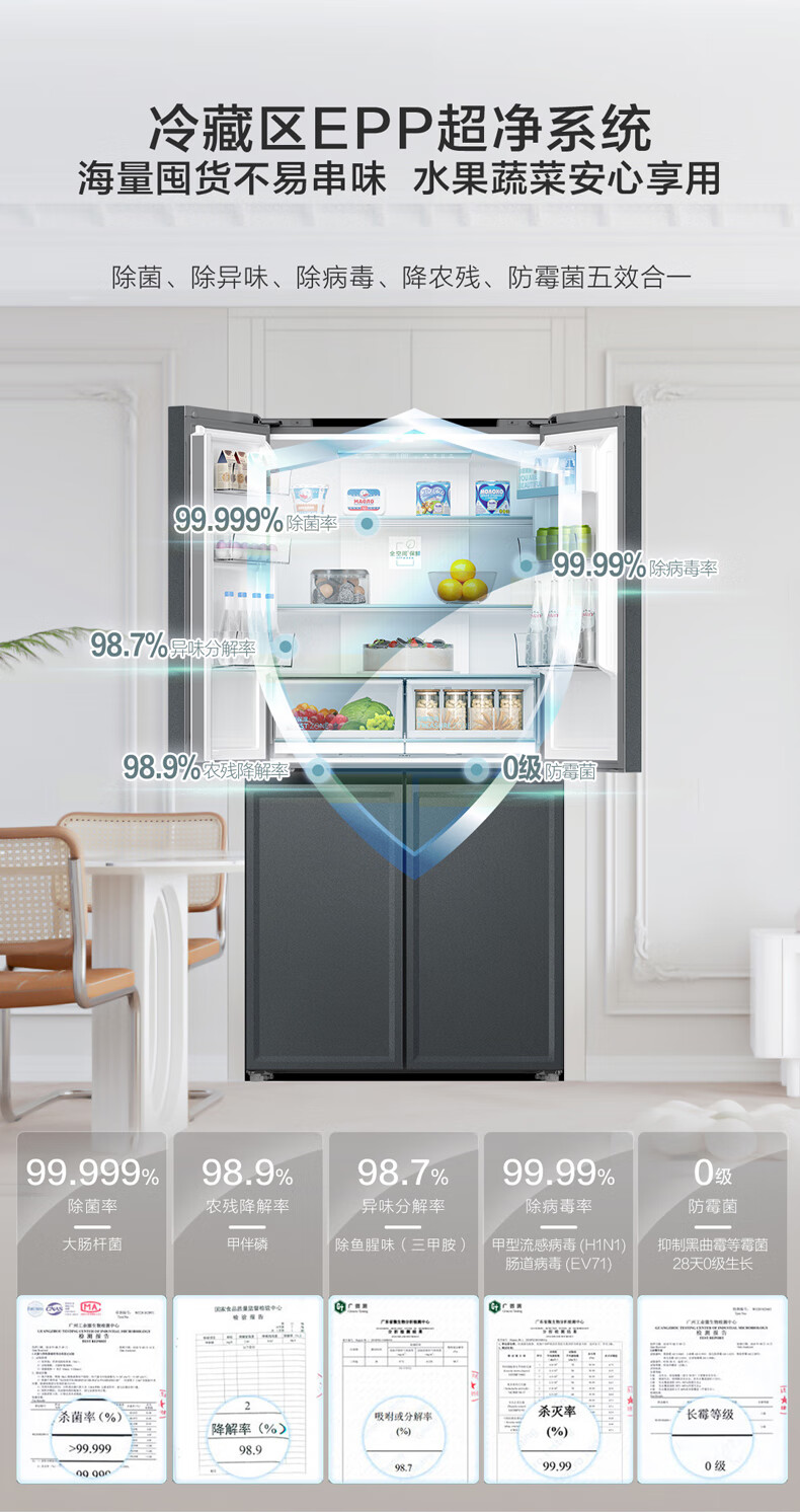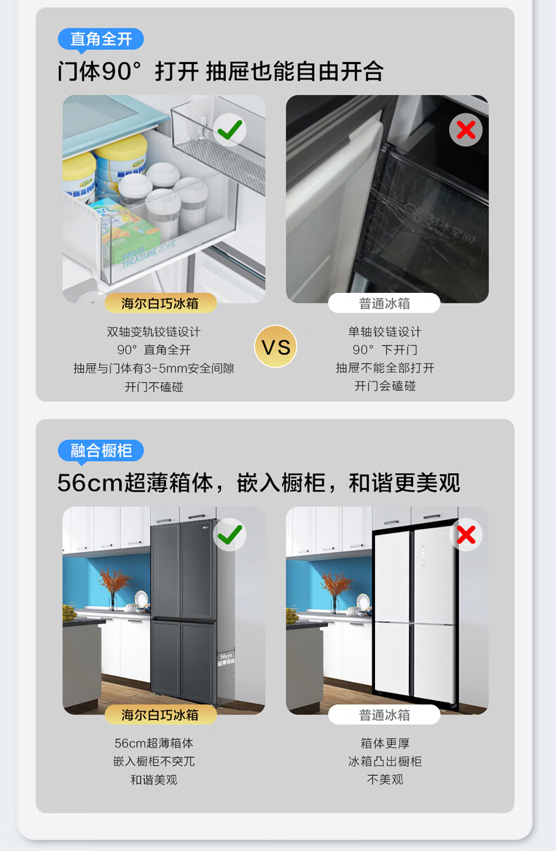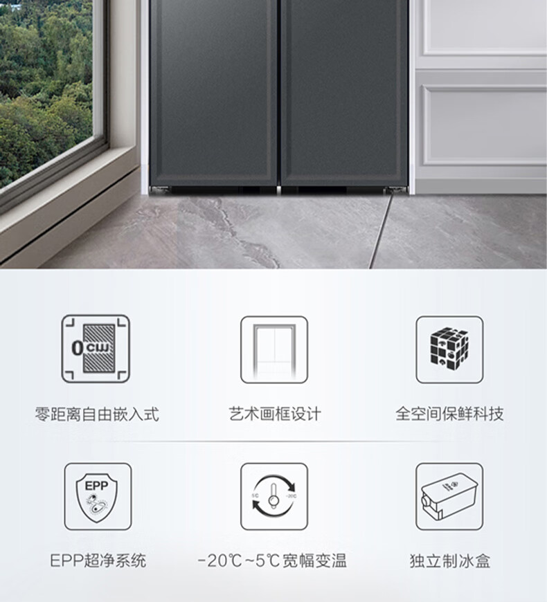 海尔(Haier)460升全空间保鲜零距离自由嵌入式快速制冰百变空间T型门冰箱BCD-460WGHTD14G9U1板岩灰