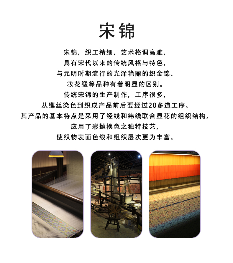 - 上久楷前身为苏州上九坎绸缎庄,源于1889年,是清光绪年间的皇室御用宋锦织造商。现从事“世界非物质文化遗产—宋锦”的抢救性开发,并研制出世界首台按照宋锦传统工艺织造的电子提花机,使宋锦走向了产业化道路