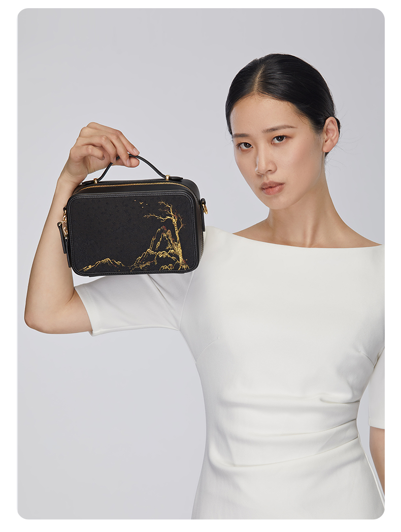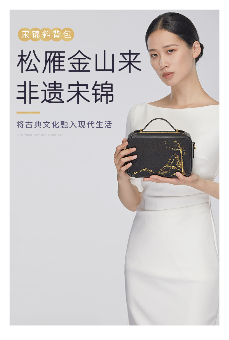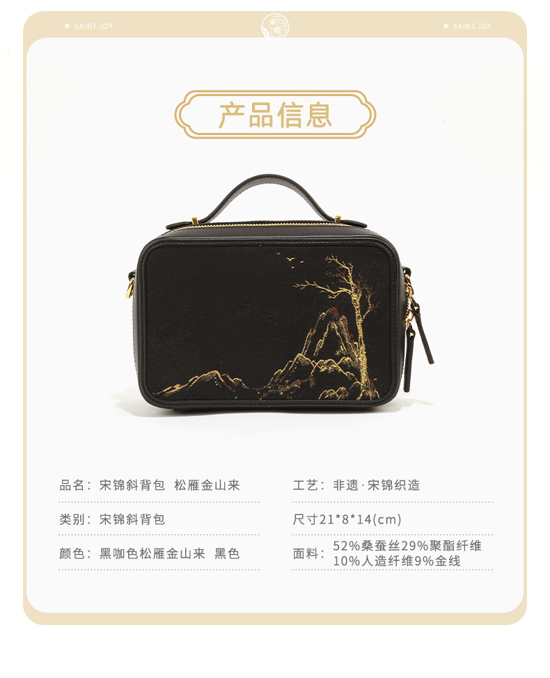 SAINTJOY/上久楷 宋锦斜背包 松雁金山来 BWW22A1602