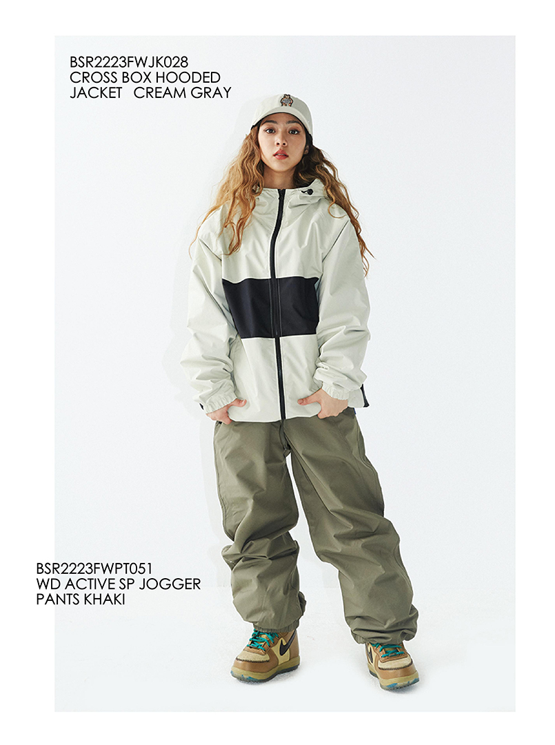 BSRABBIT 22-23FWJK028 新款雪服 CROSS BOX HOODED JACKET CREAM GRAY