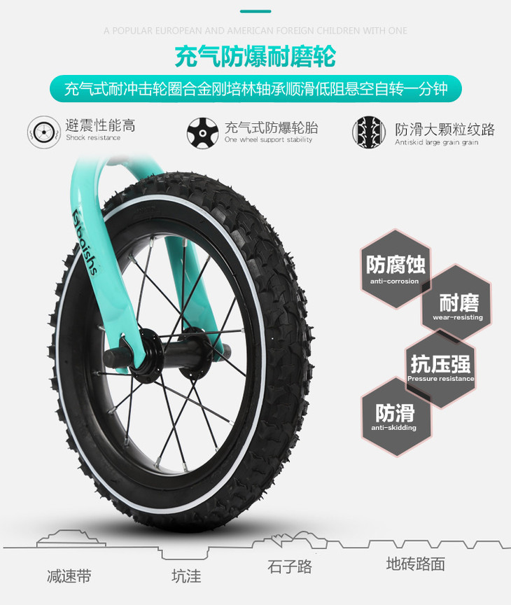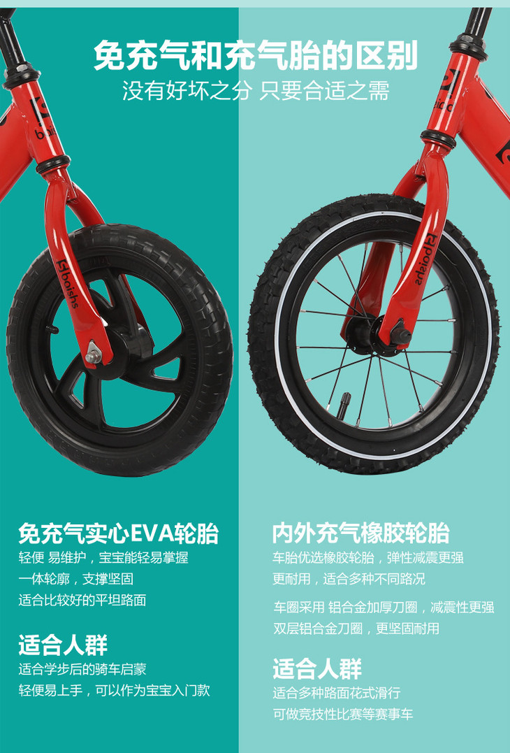 【自行车】儿童平衡车 无脚踏两轮自行车 12寸充气轮宝宝滑行车