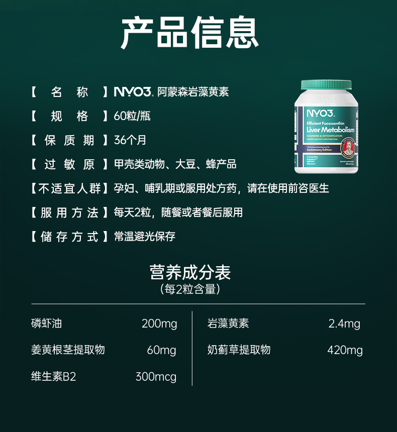 NYO3 阿蒙森岩藻黄素60粒/瓶