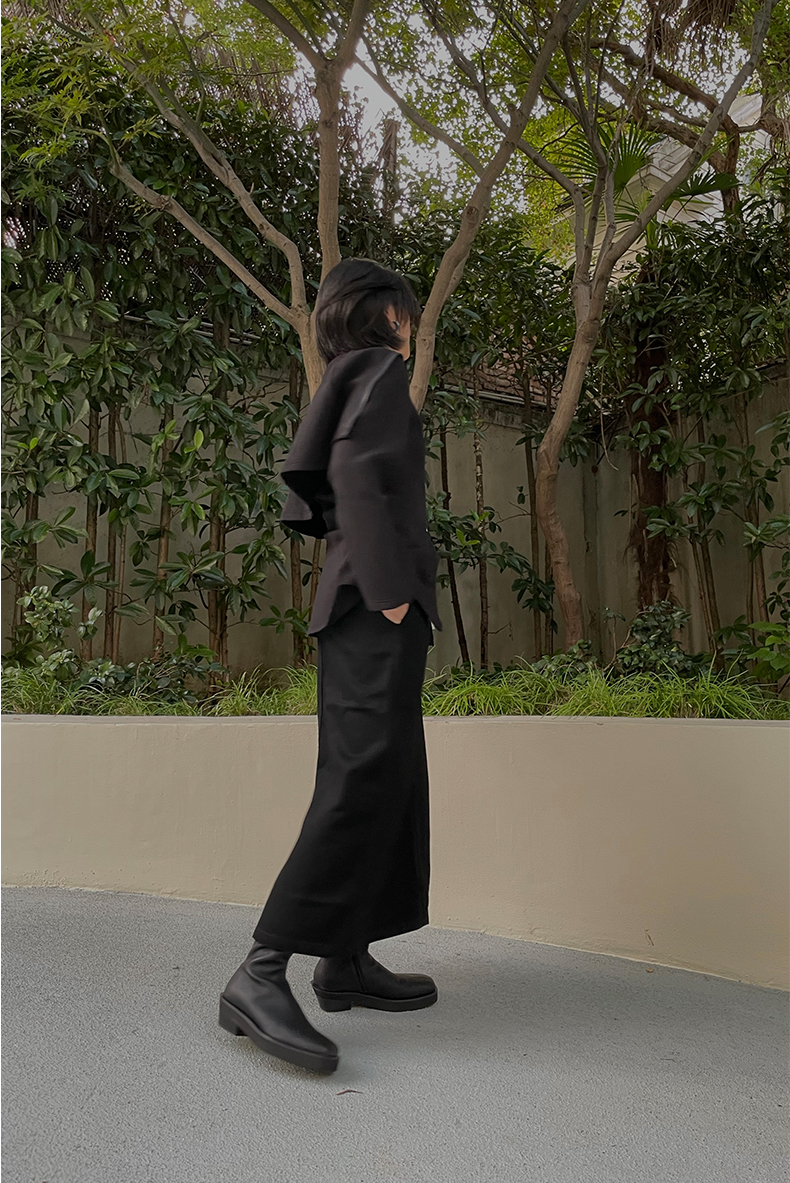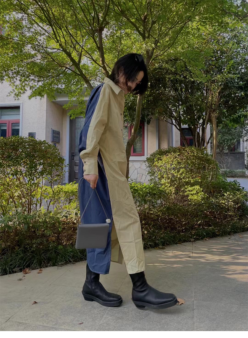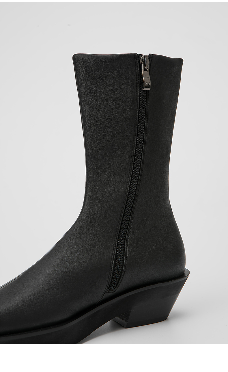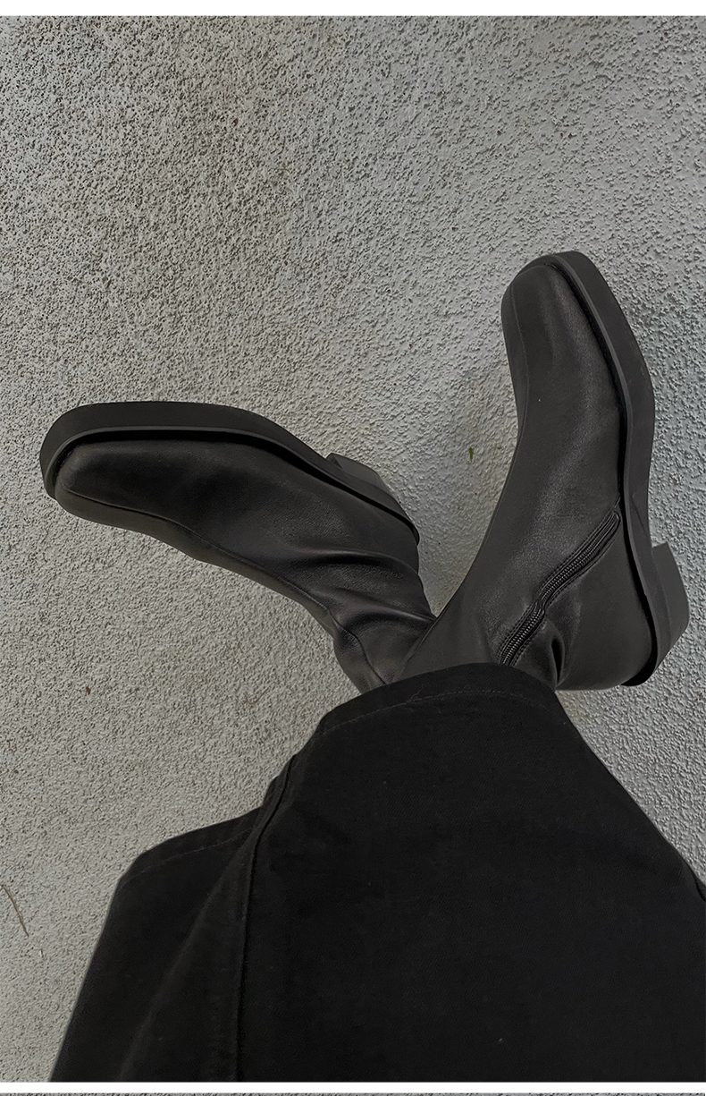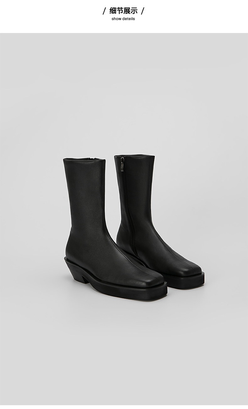 HIDEMI 弹力羊皮女鞋方头厚底踝靴短靴