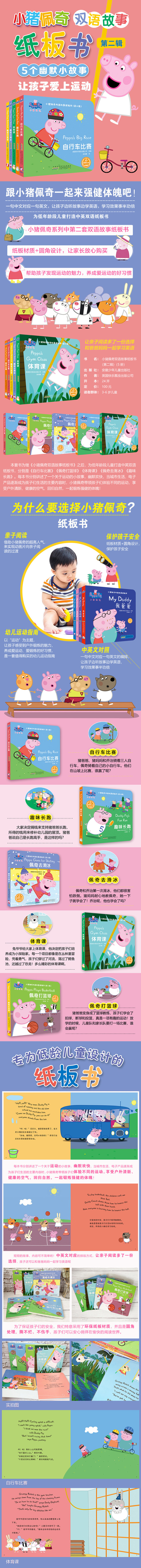 猪佩奇双语故事纸板书(第二辑)(5册套装) 5个幽默小故事,让孩子爱上运动。跟小猪佩奇一起来强健体魄吧!
