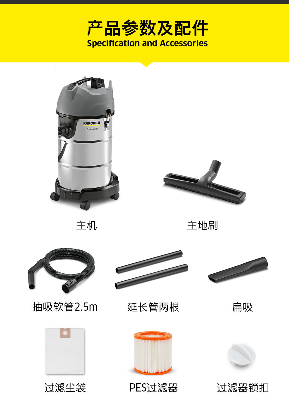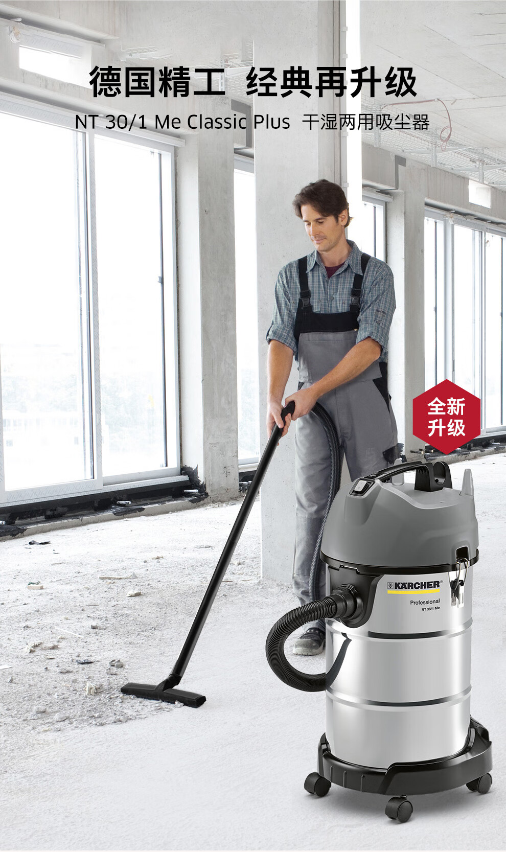 KARCHER德国卡赫 家用商用工业加厚不锈钢桶式干湿两用大吸力吸尘器2023全新升级 NT30/1 Plus