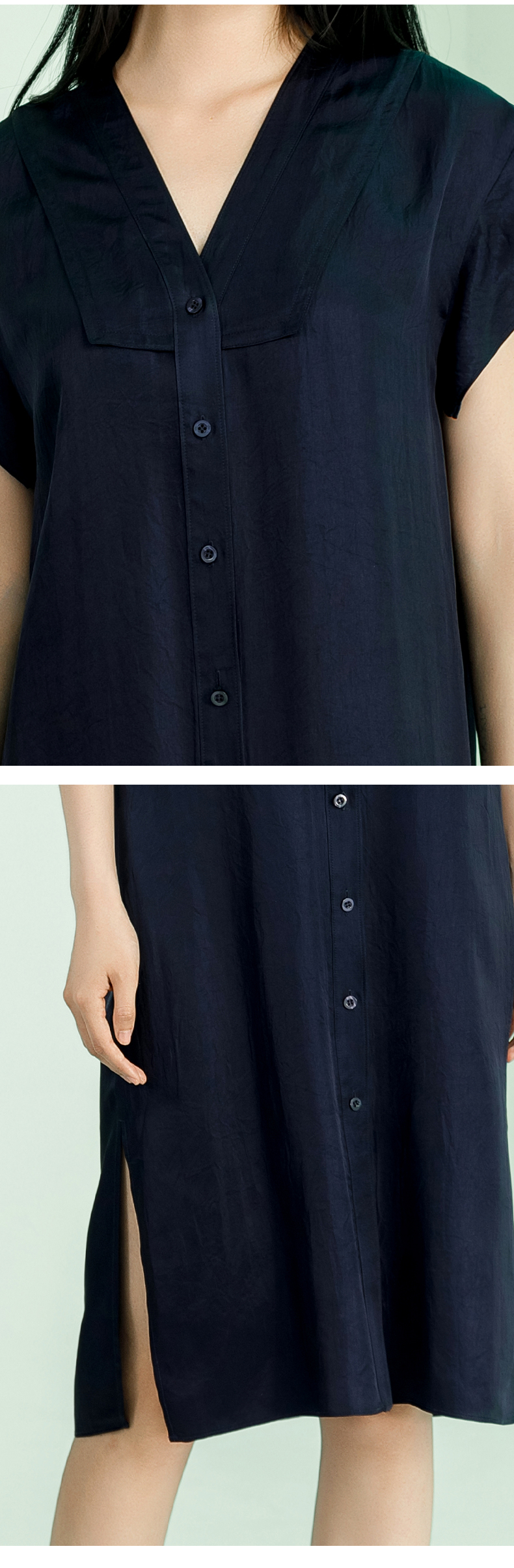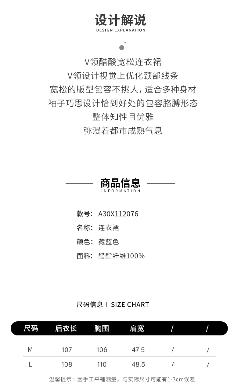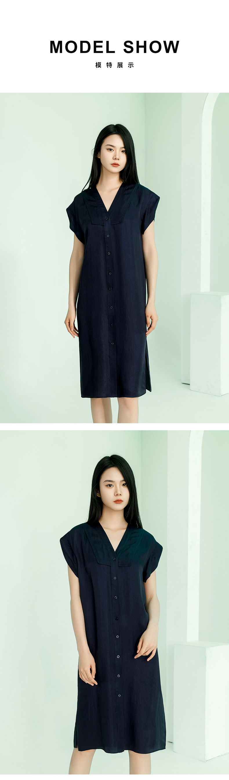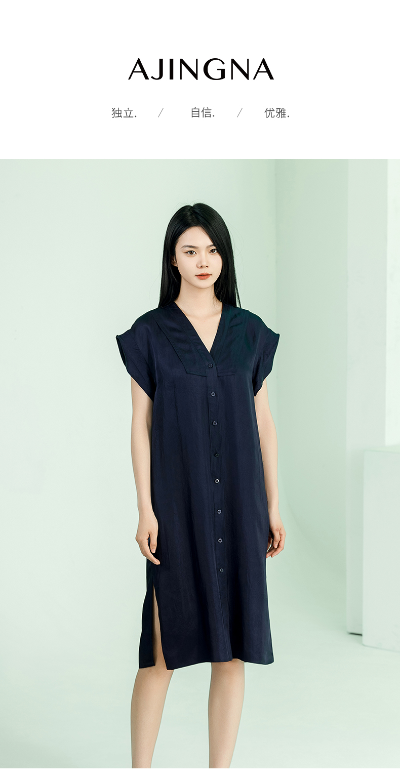 【商场同款】阿菁娜2024夏季新款V领醋酸宽松连衣裙A30X112076