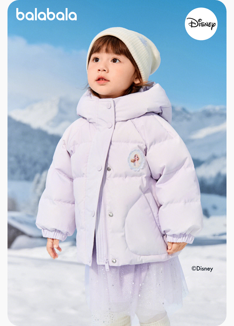 【迪士尼IP】巴拉巴拉balaOne童装女童羽绒服2025新款保暖外套甜