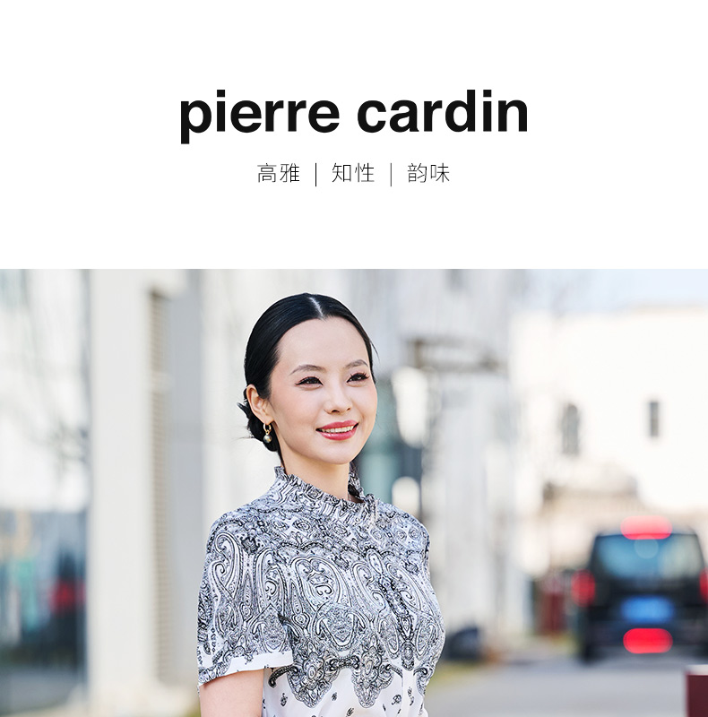 皮尔卡丹女装年夏季新款假两件式印花拼接连衣裙C22DS03B0