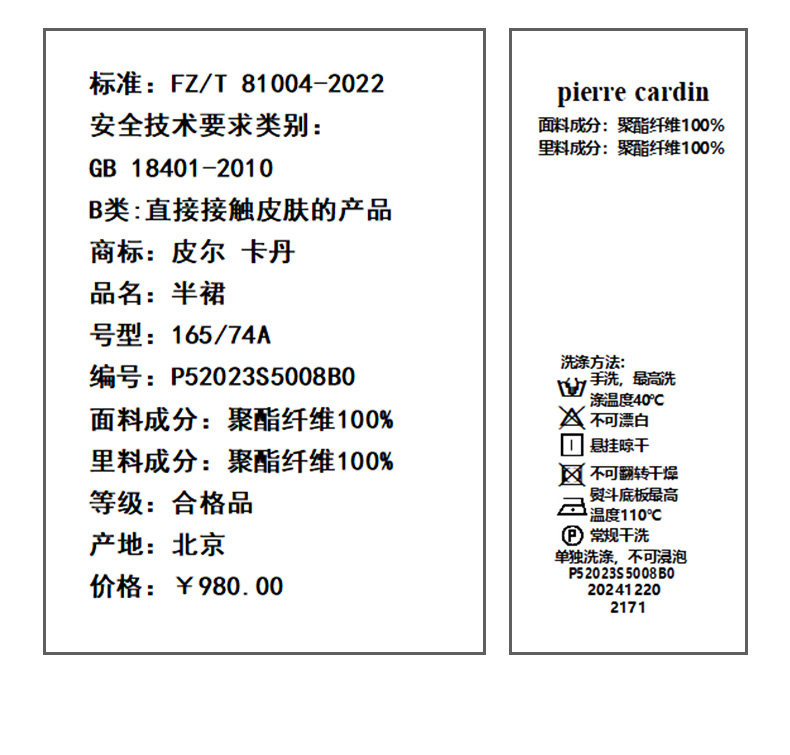 皮尔卡丹女装半身裙P52023S5008B0