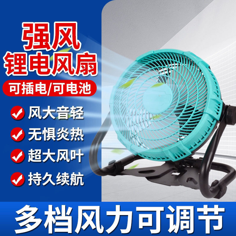 【货号010038】牧田款插脚12寸锂电风扇充电式大风力户外露营便携式无线调速款落地扇趴地电扇