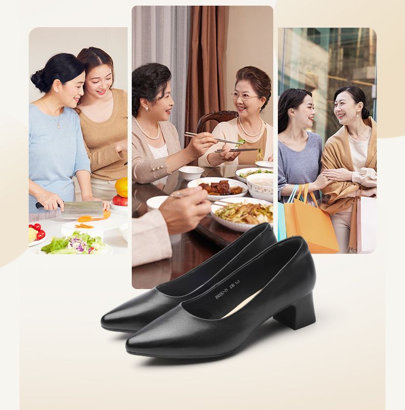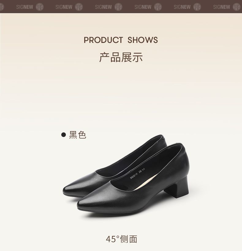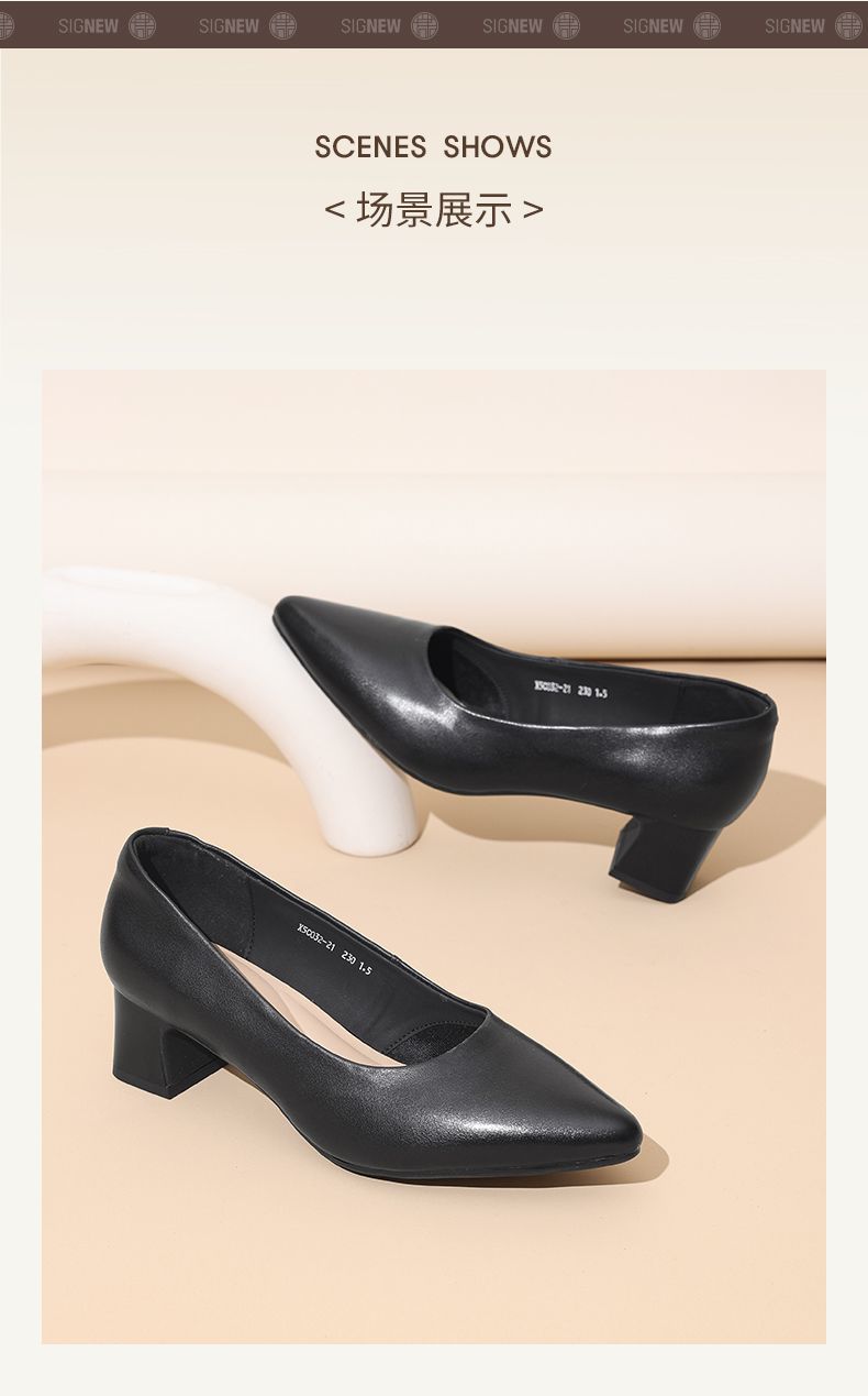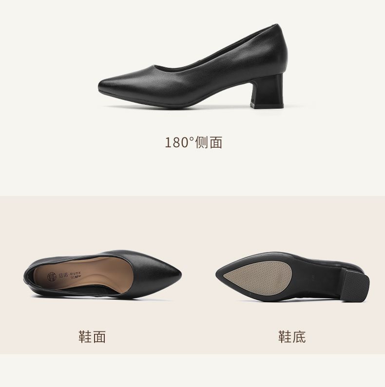 信诺真皮舒适女鞋2025新款浅口尖头通勤中年妈妈鞋软底工作鞋皮鞋X5C032-21