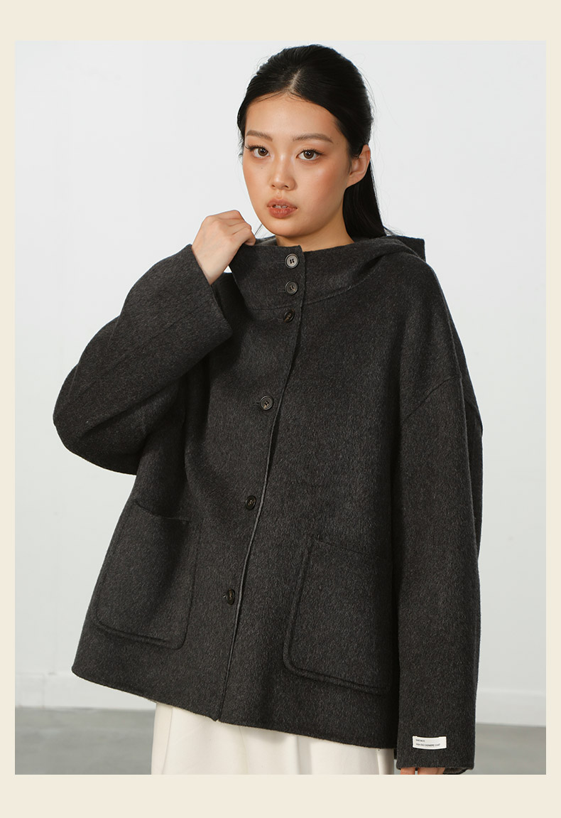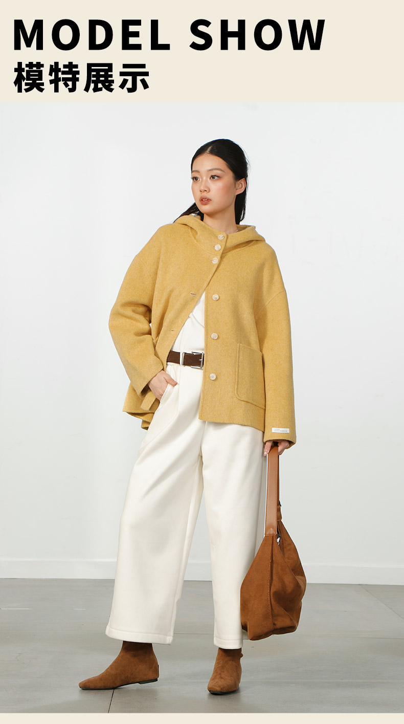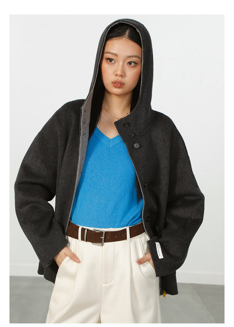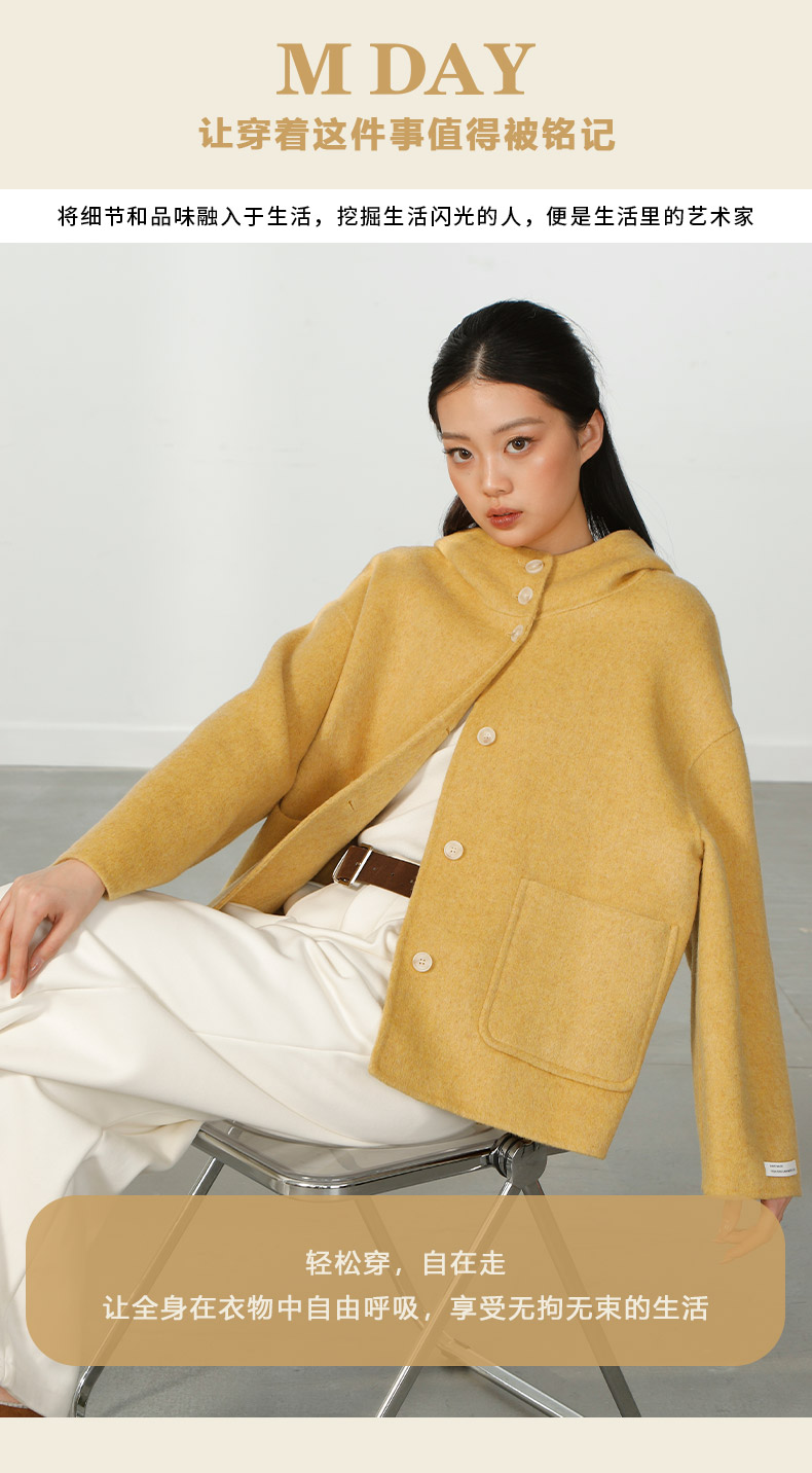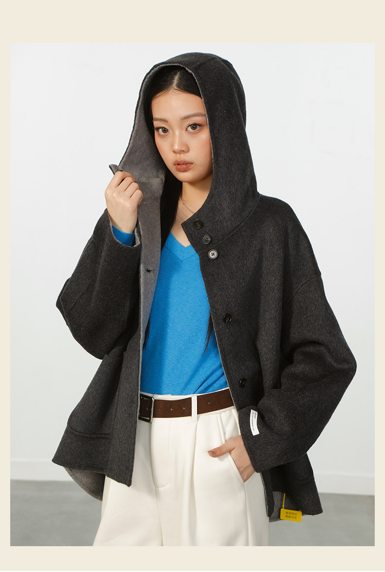 极简休闲款连帽大口袋羊毛短款大衣-纪念日百货门店同款166695885
