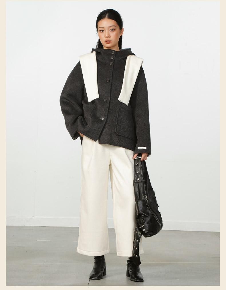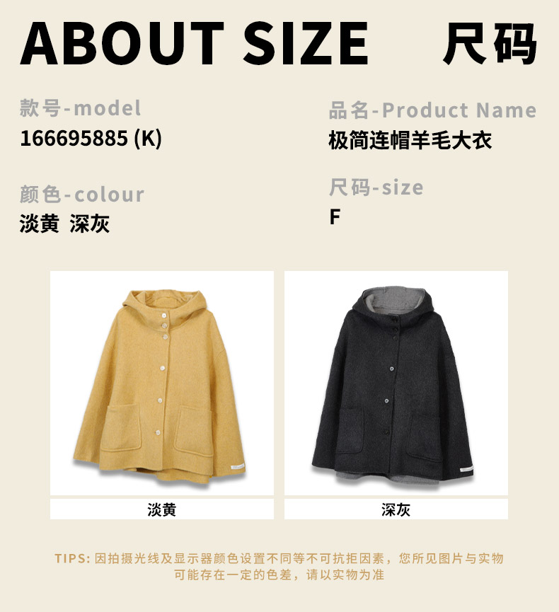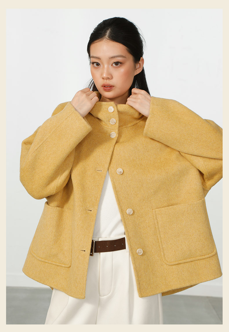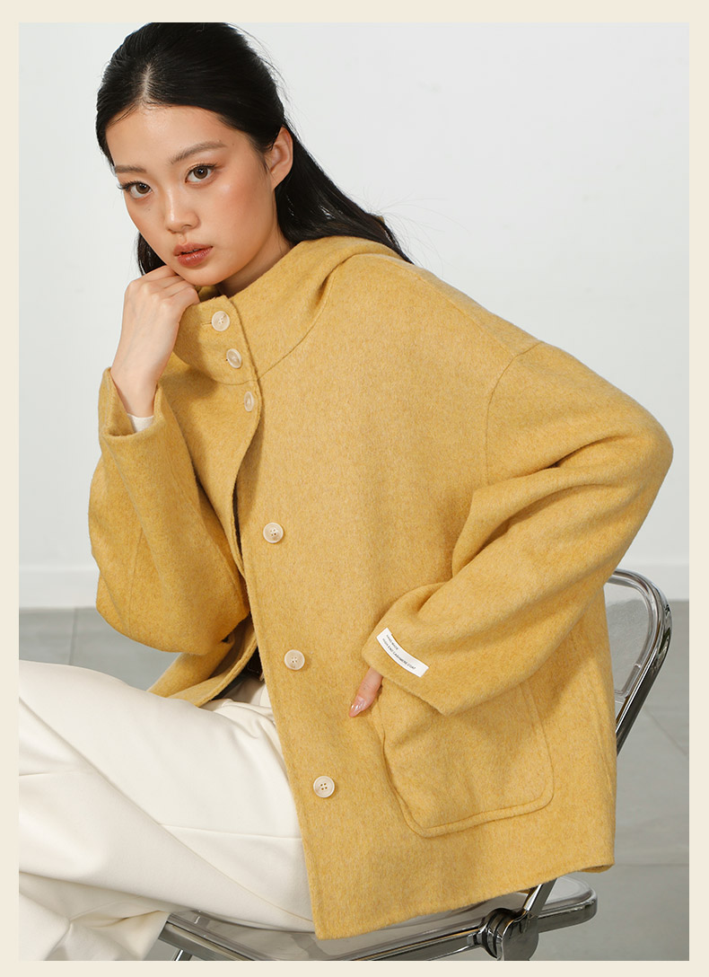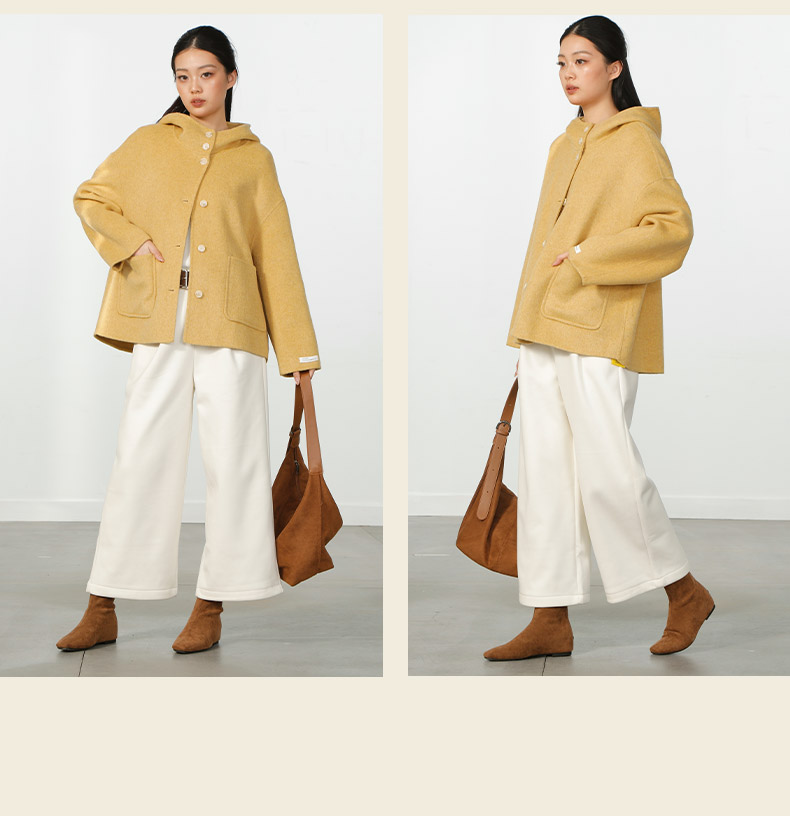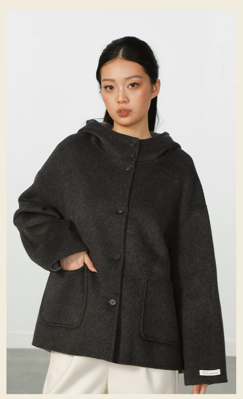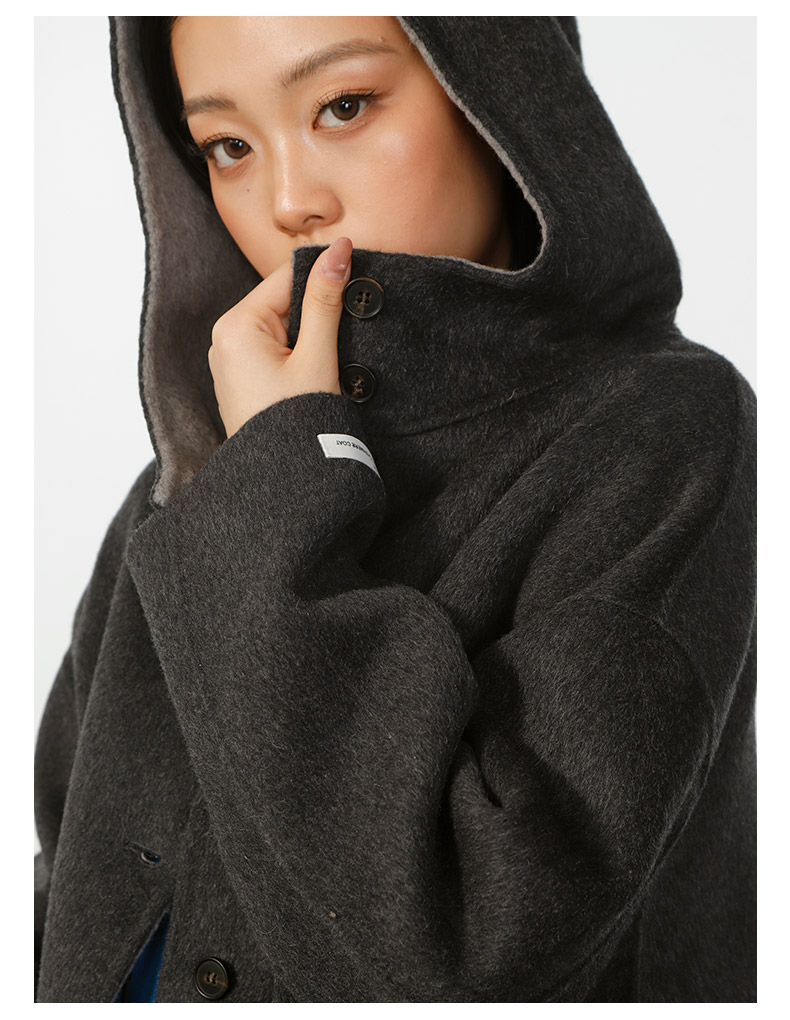 极简休闲款连帽大口袋羊毛短款大衣-纪念日百货门店同款166695885