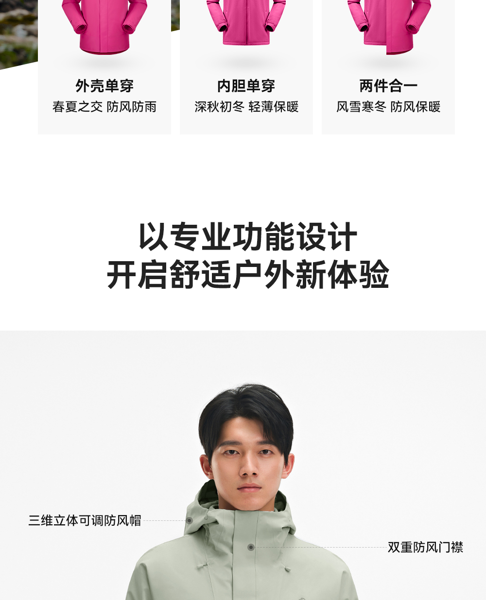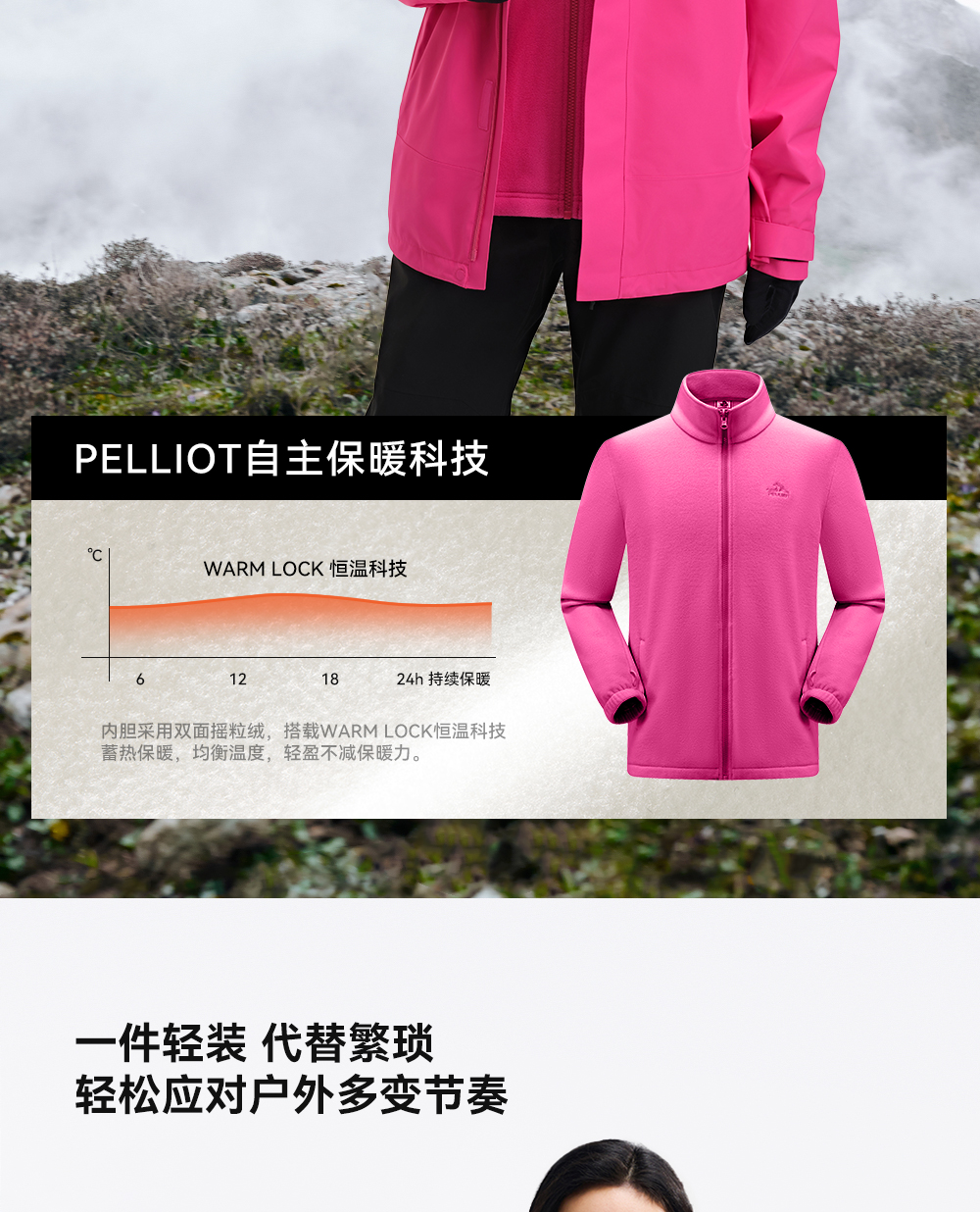 伯希和户外冲锋衣2025新款三合一外套男女同款徒步登山服暖绒内胆