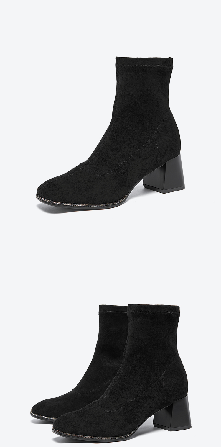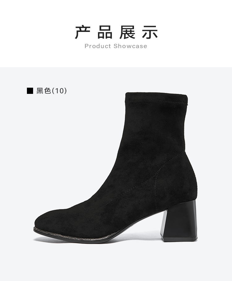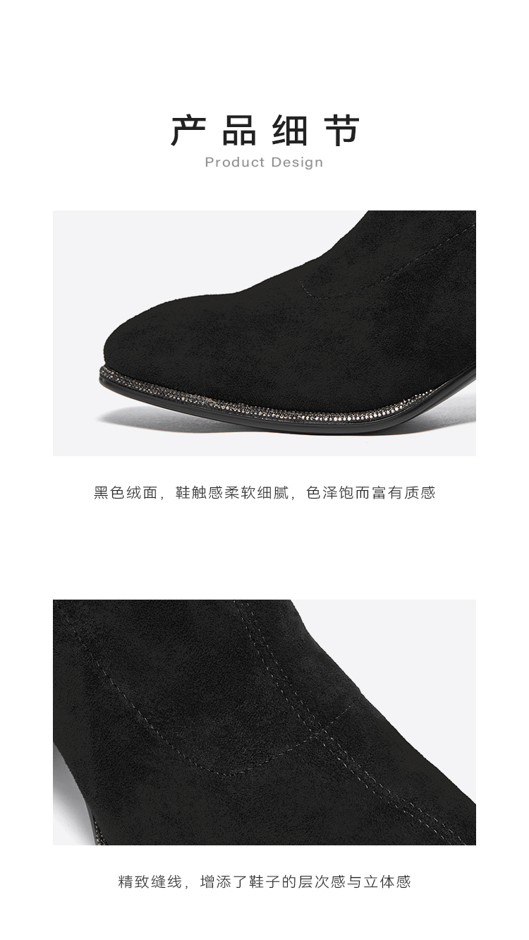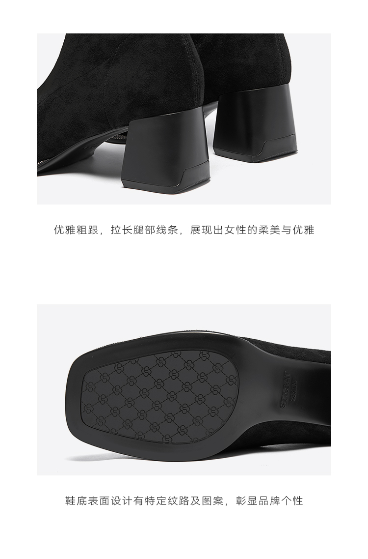 星期六精致钻条延边方头粗跟瘦瘦靴SSC4116349