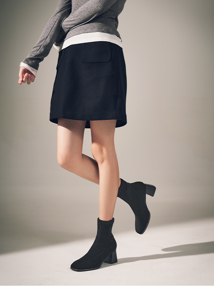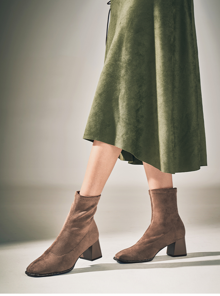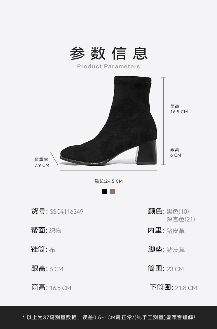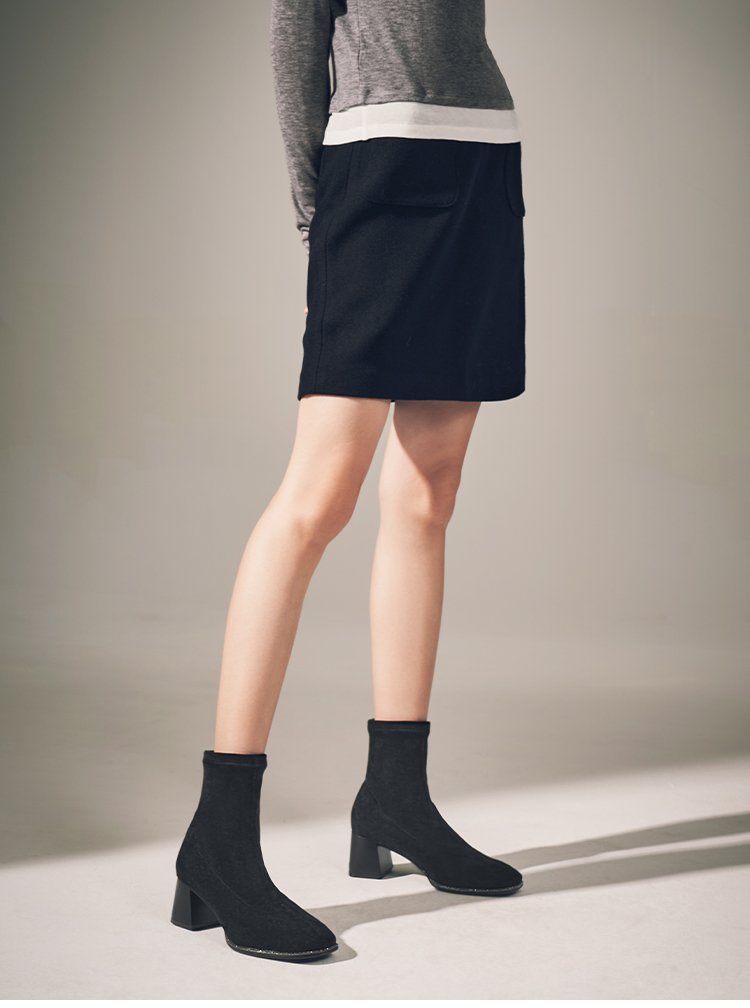 星期六精致钻条延边方头粗跟瘦瘦靴SSC4116349