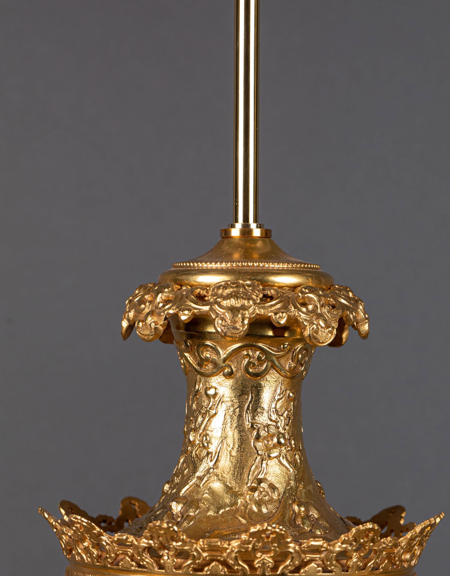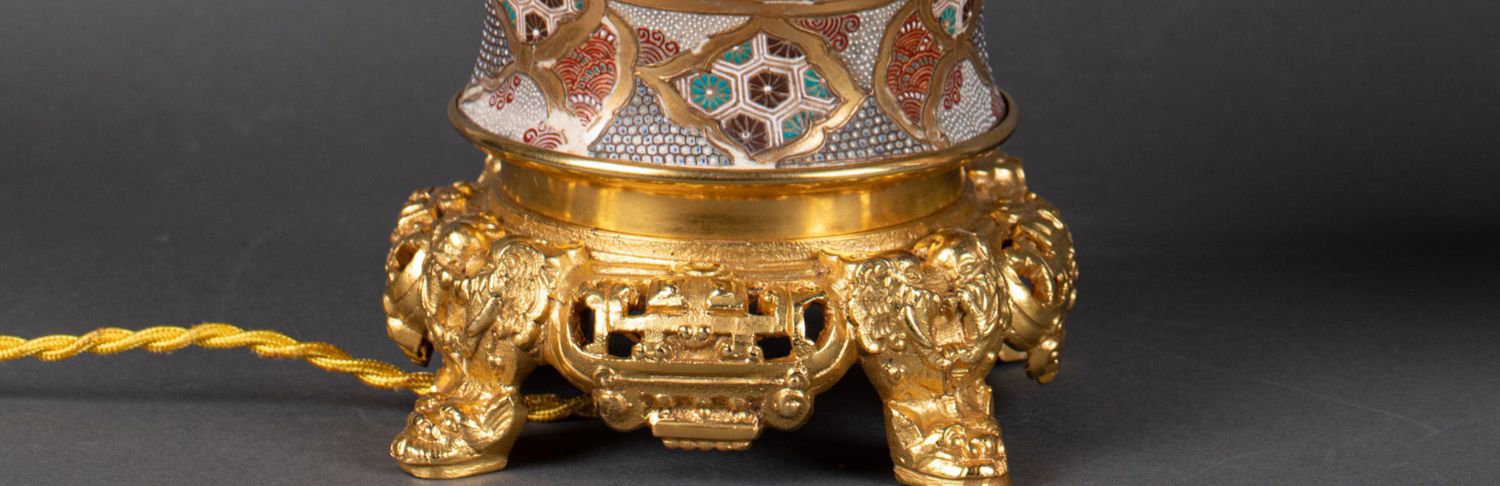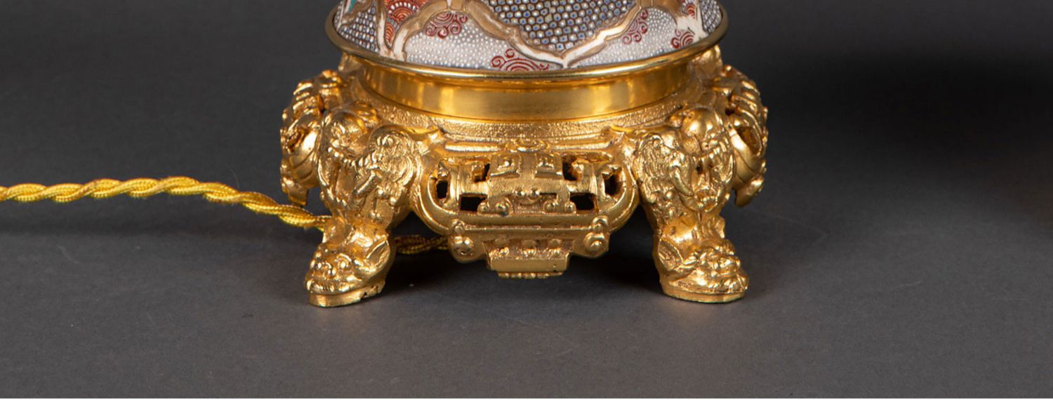独角鹿西洋古董欧式法式vintage台灯一对萨摩烧铜鎏金花瓶造型