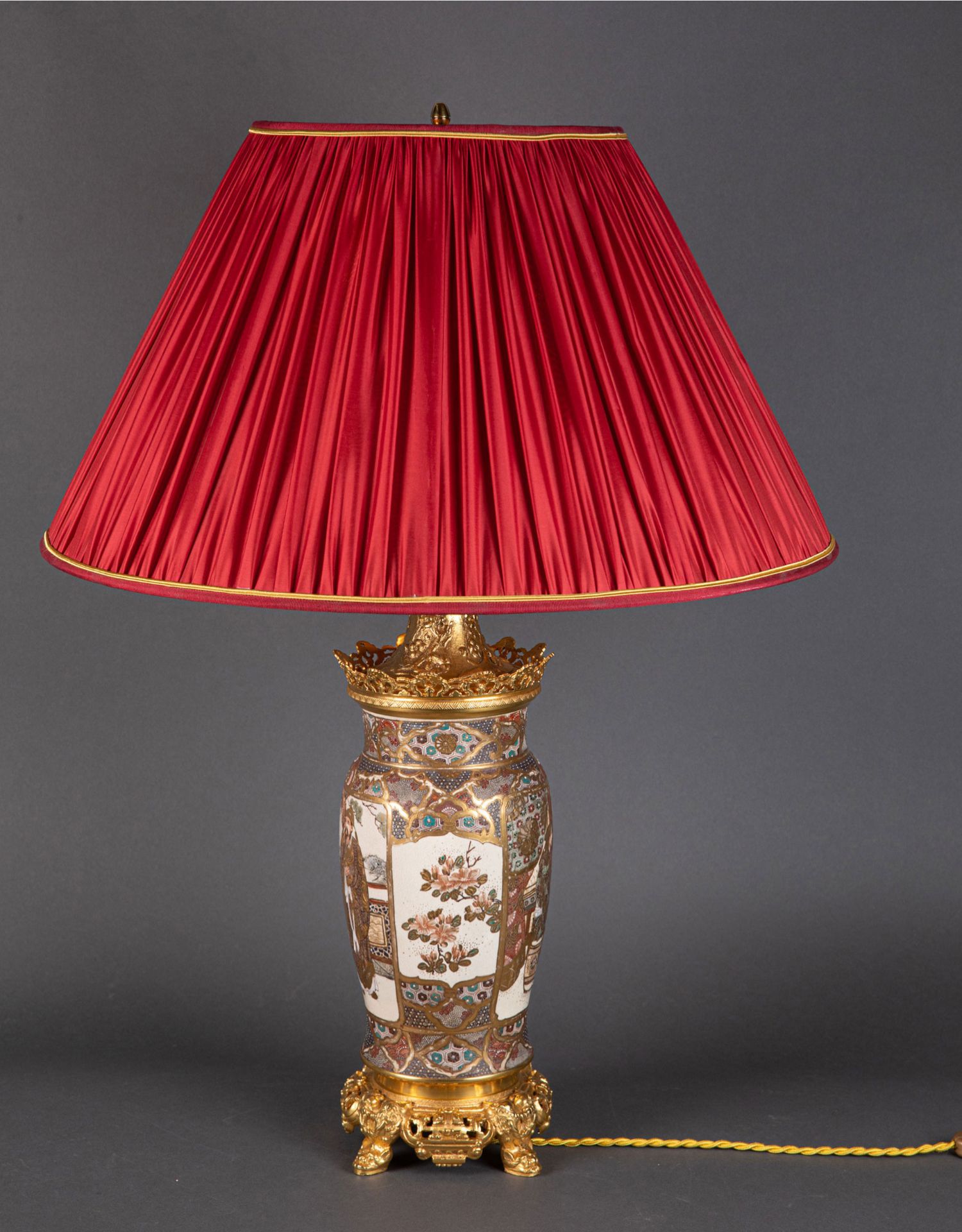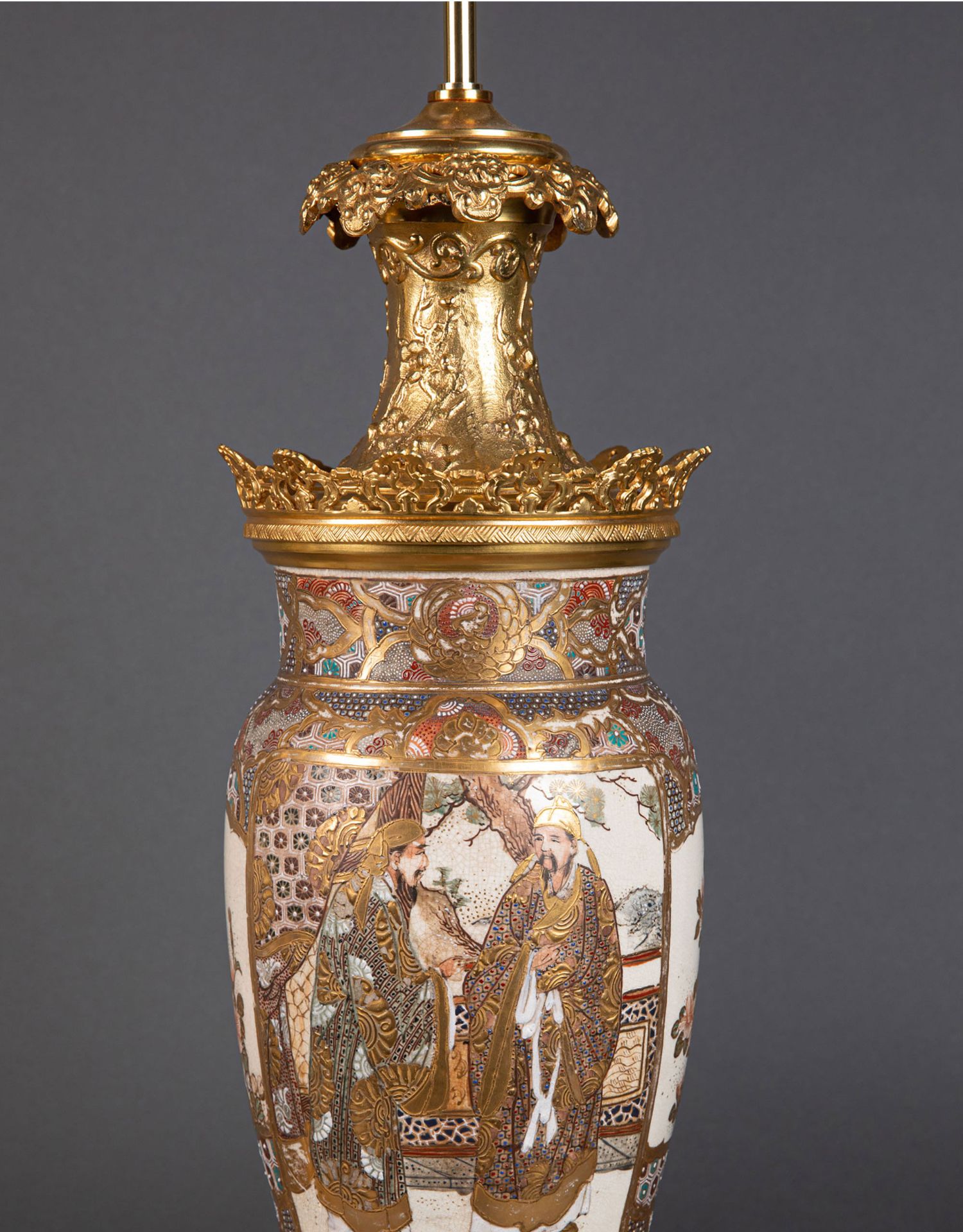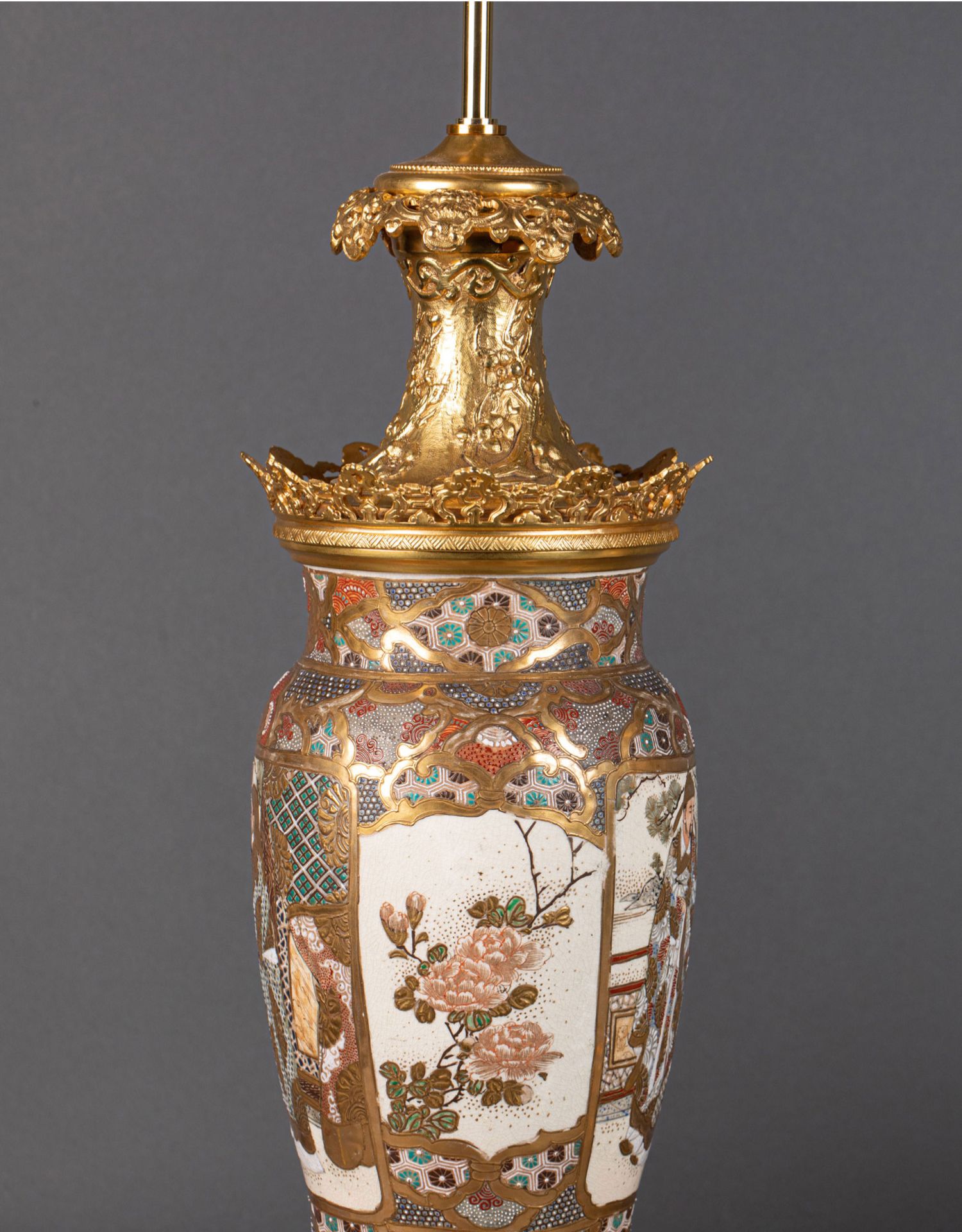独角鹿西洋古董欧式法式vintage台灯一对萨摩烧铜鎏金花瓶造型
