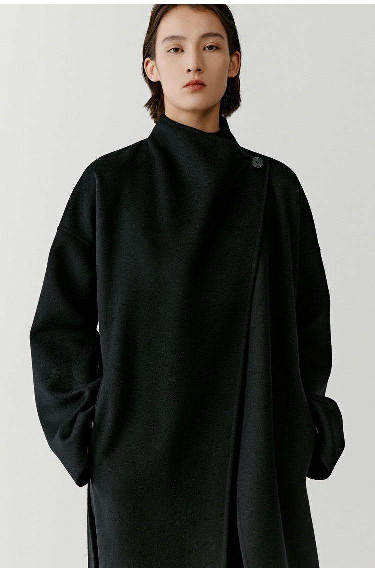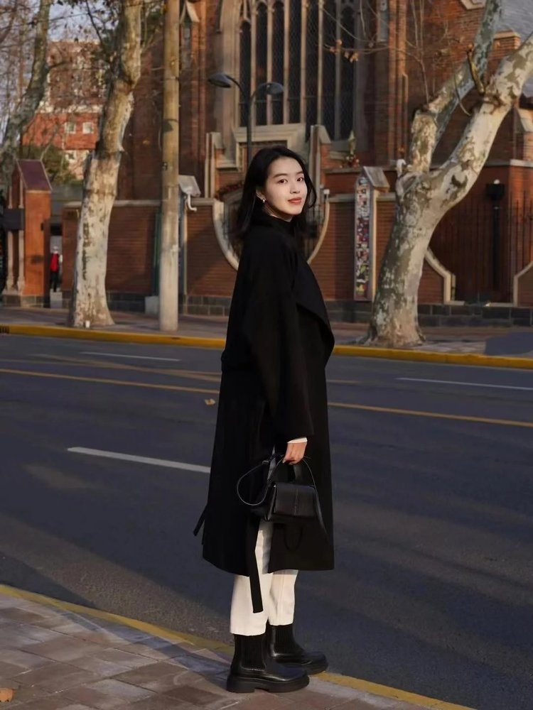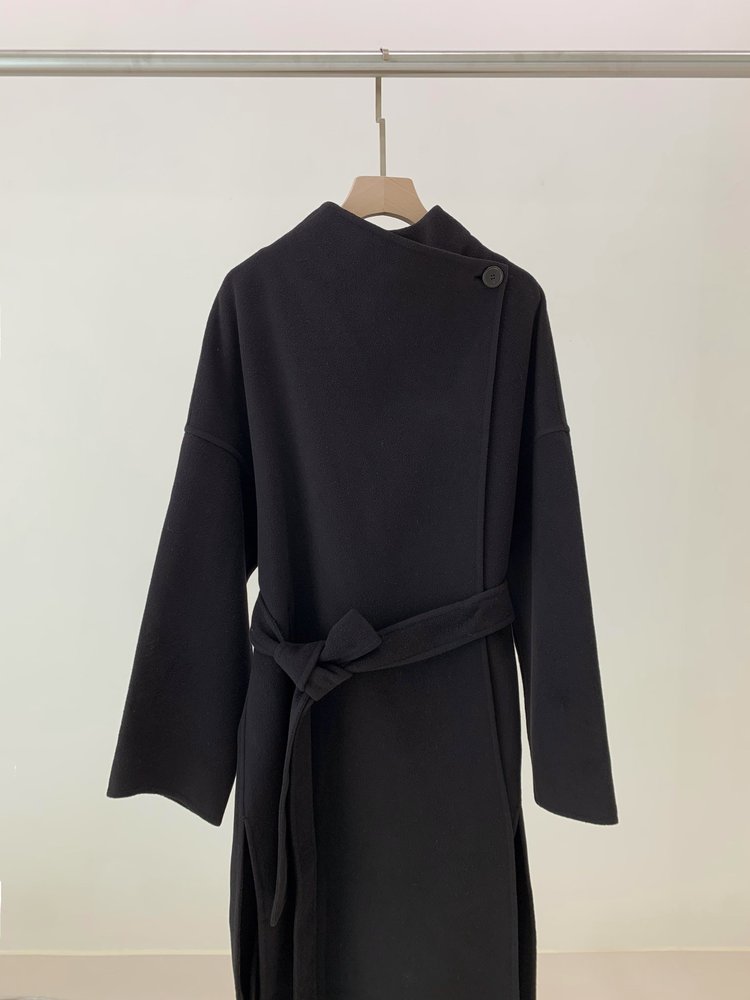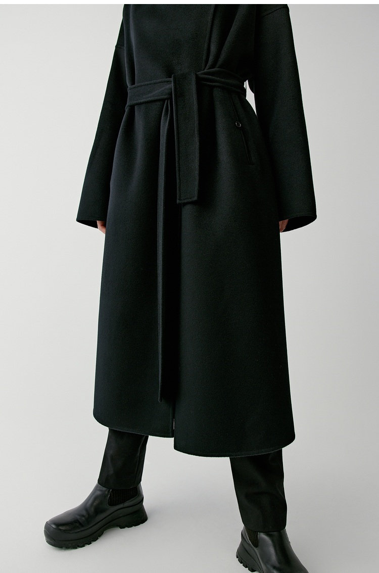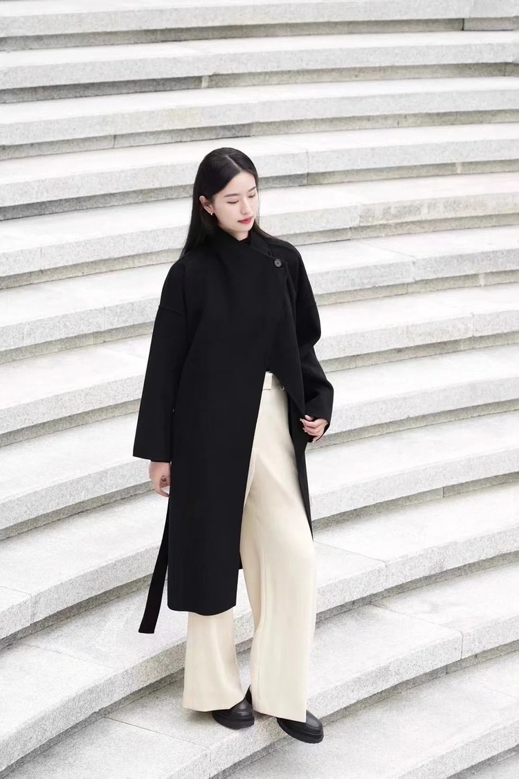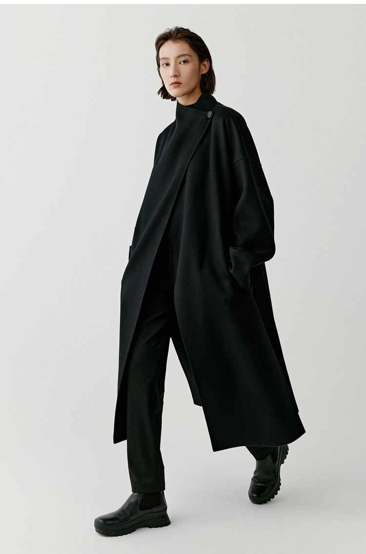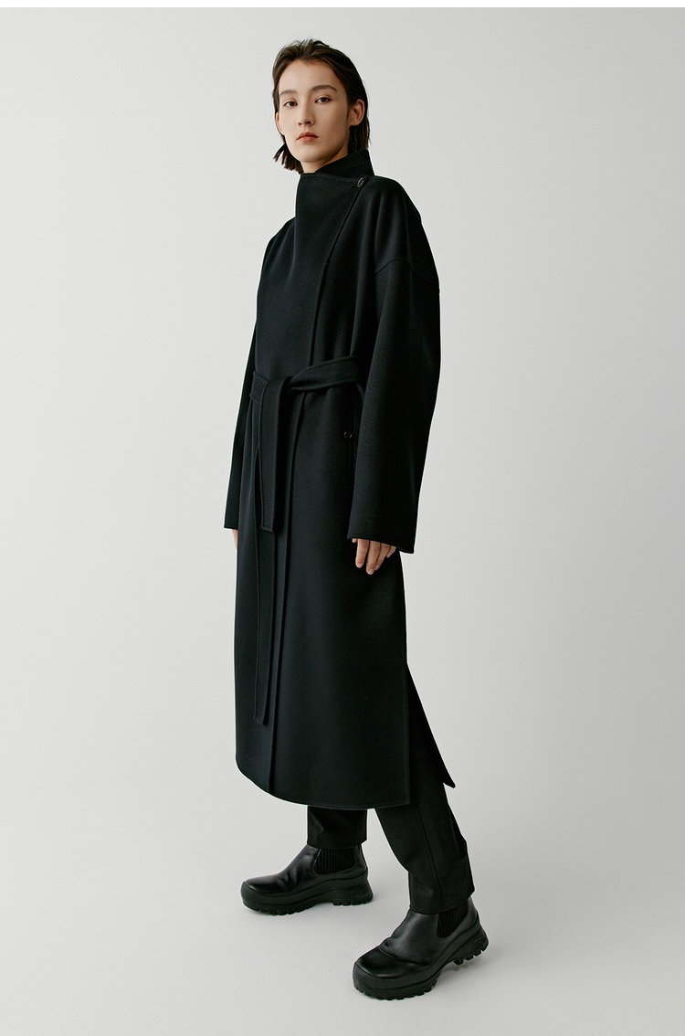 小禾同款"黑骑士大衣”绢丝羊毛双面呢系带大衣
