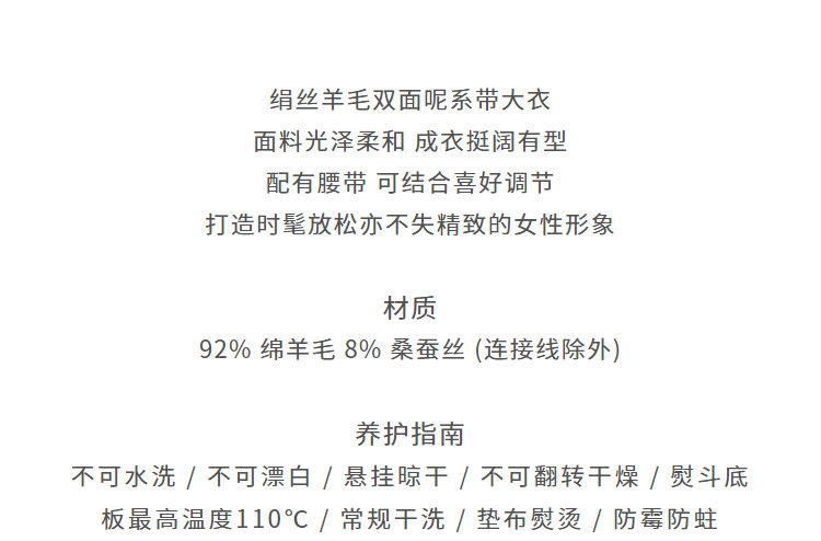 【高品质私服】【IC绢丝羊毛双面呢系带大衣】打造时髦放松亦不失精致的女性形象N1020-CC【无标出货 介意慎拍】