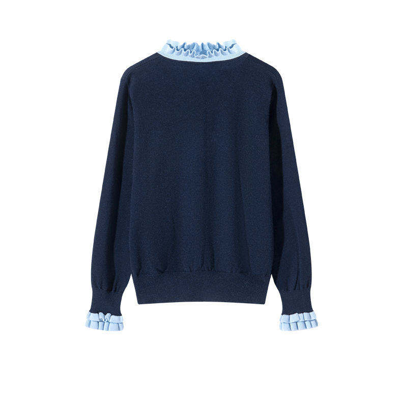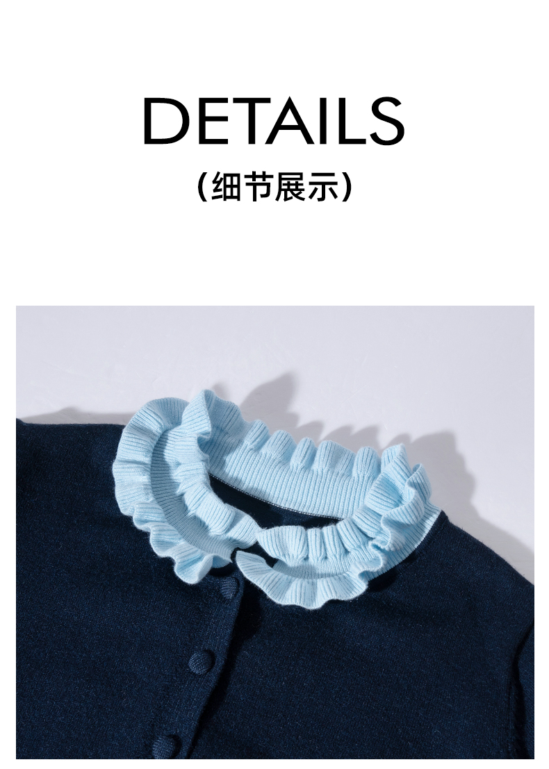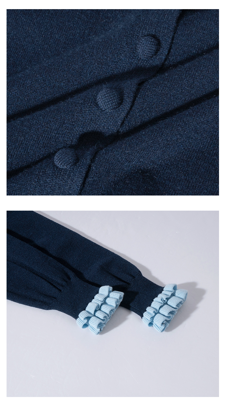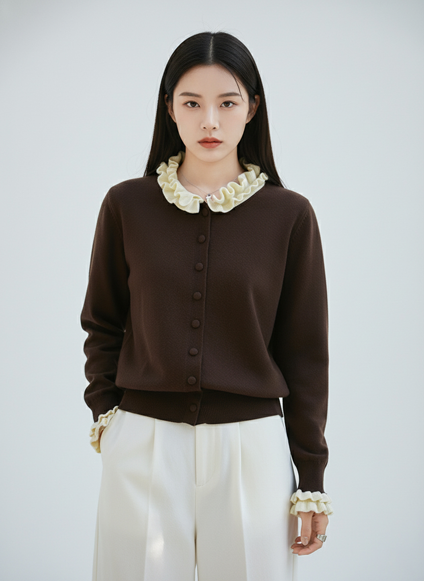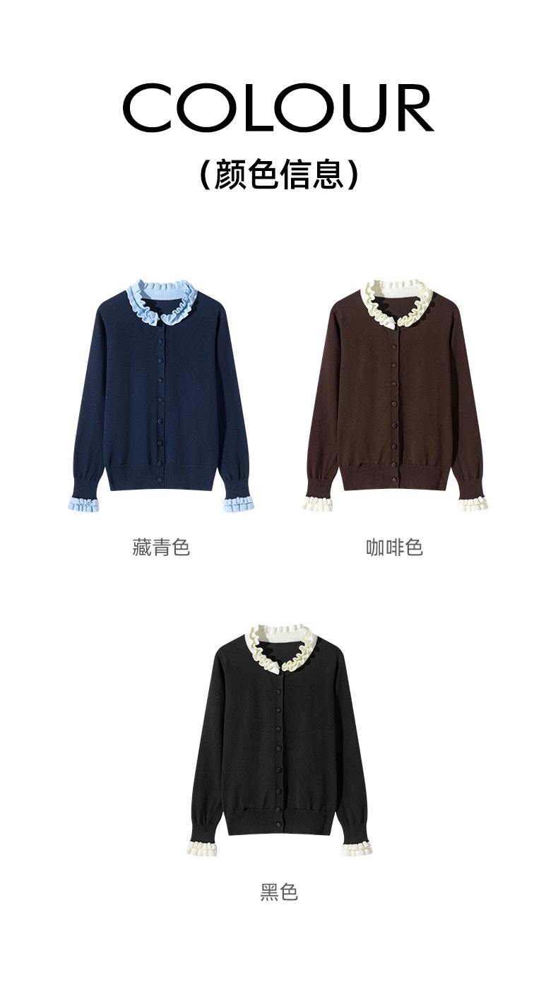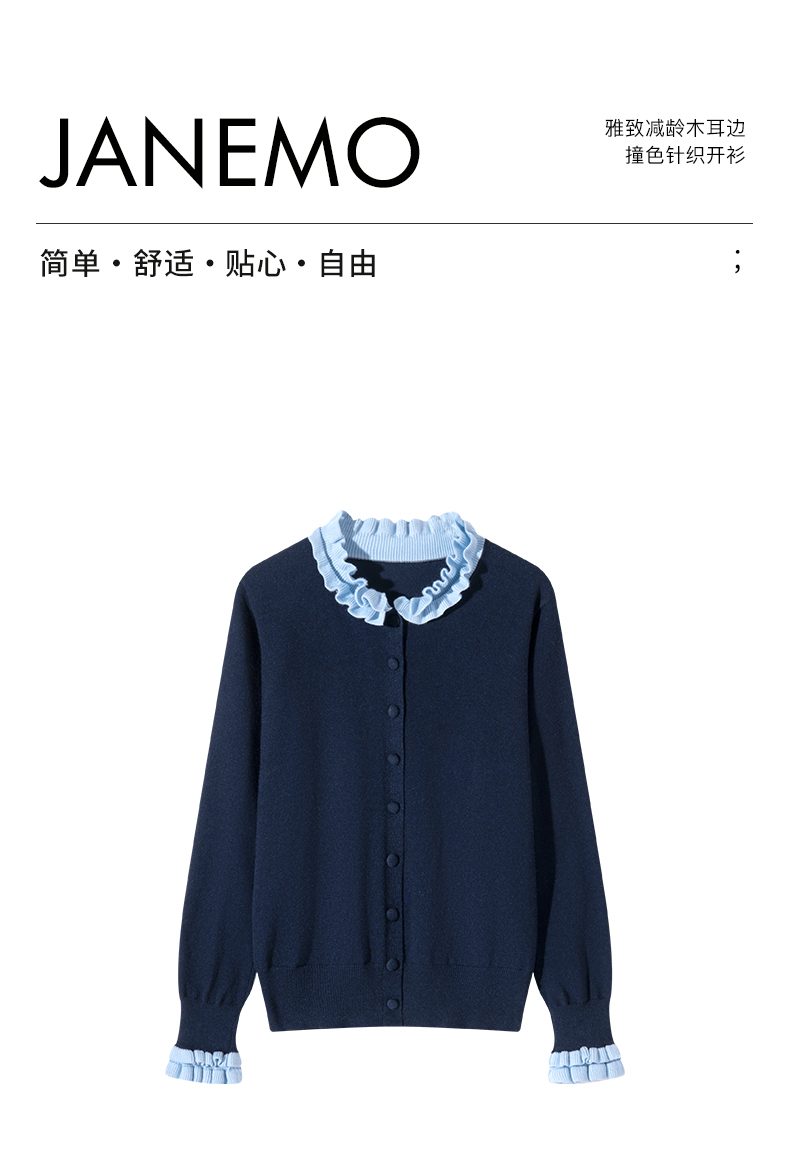 茧墨 雅致减龄木耳边撞色针织开衫