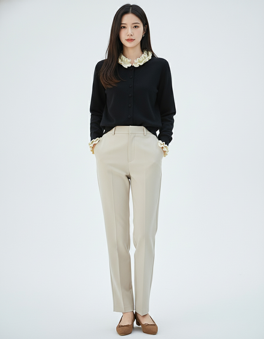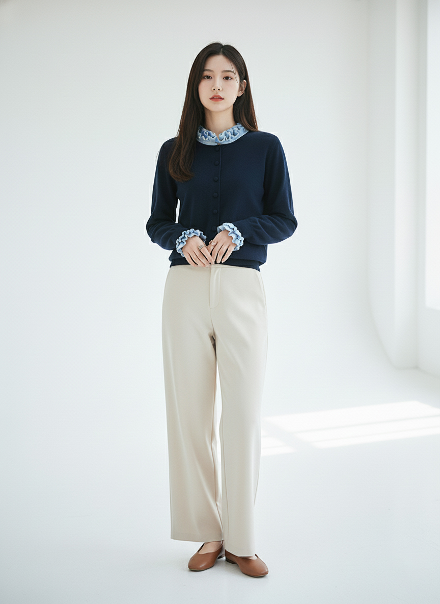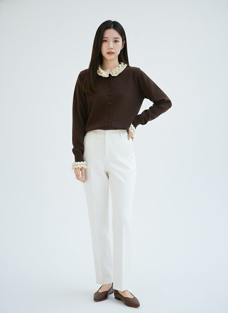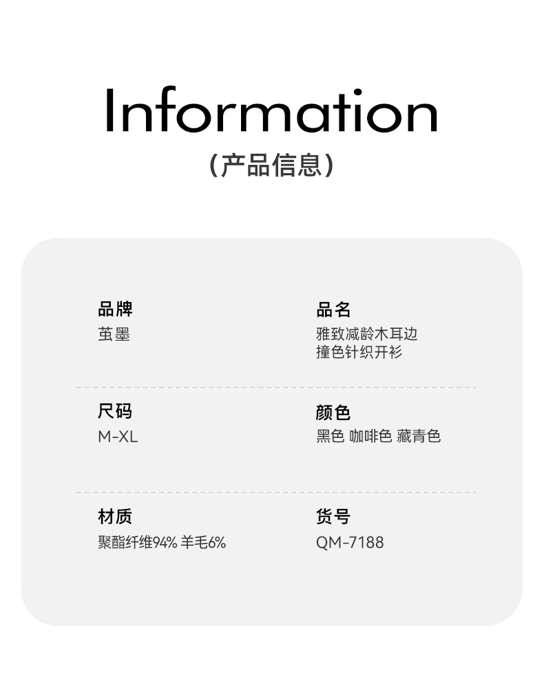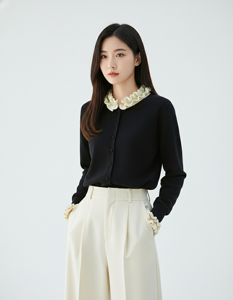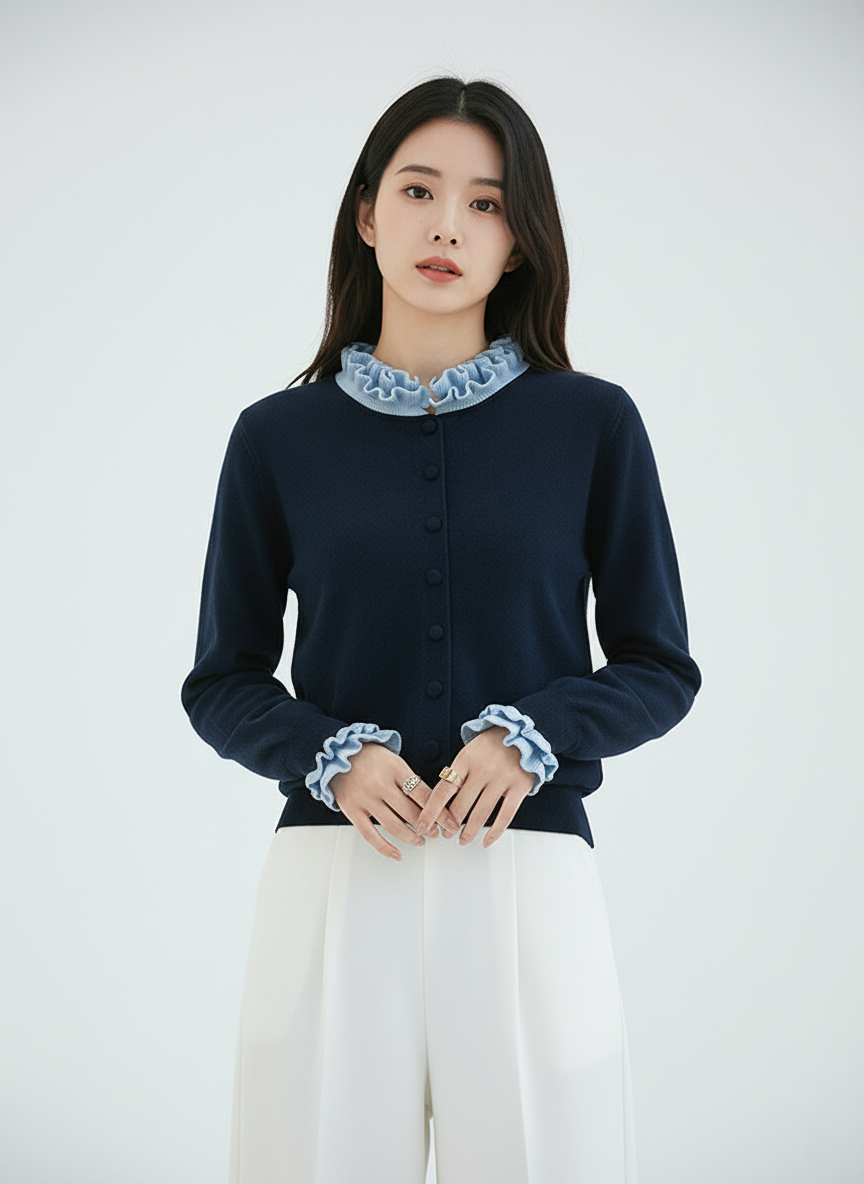 茧墨 雅致减龄木耳边撞色针织开衫