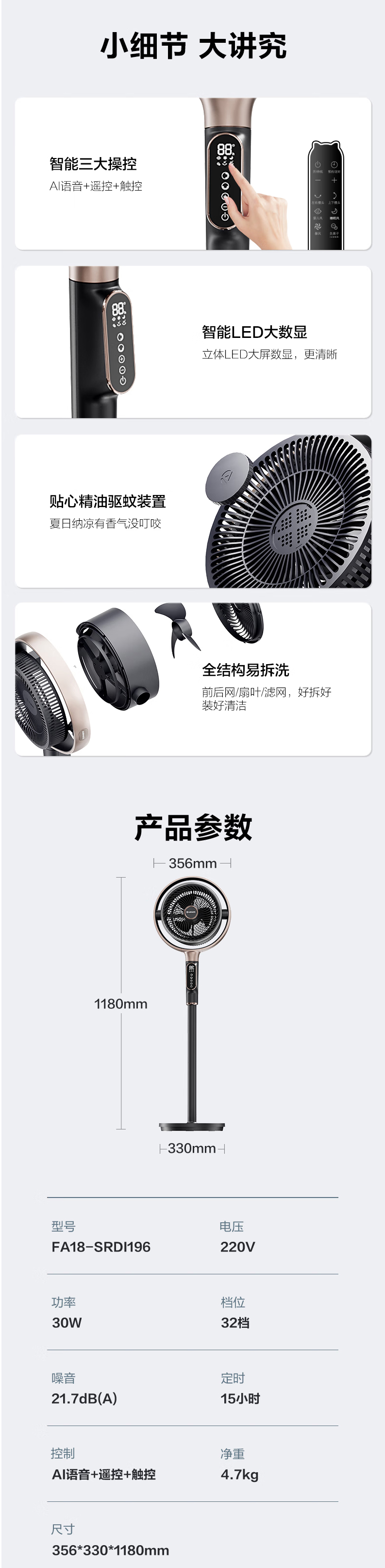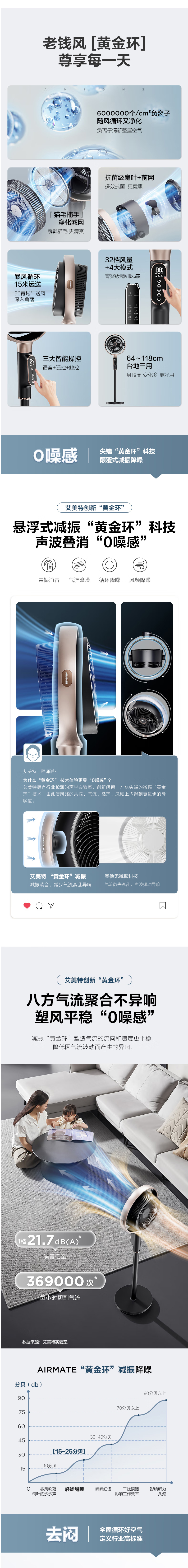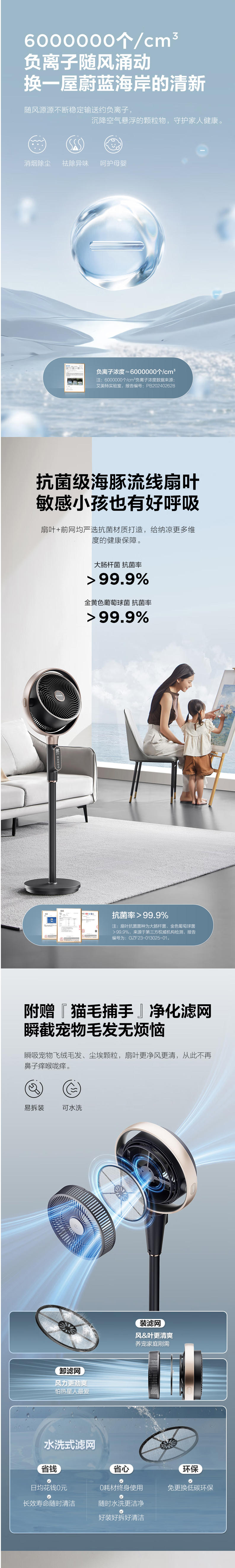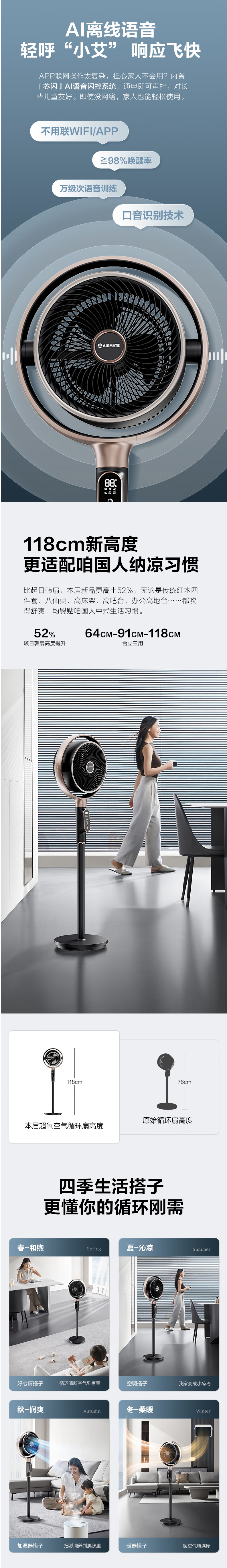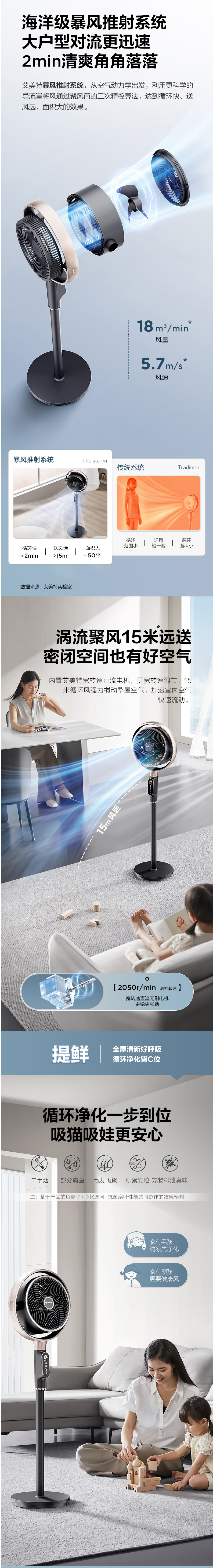 艾美特(AIRMATE)(510596)2025年新款语音空气循环扇家用电风扇负离子净化过滤落地扇直流变频智能电扇FA18-SRDI196 智能语音+空气过滤