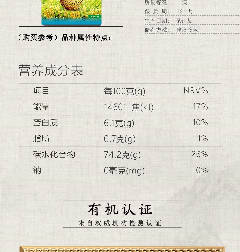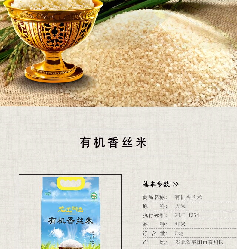 襄阳翘谷龙王御品 有机香丝米5kg/袋