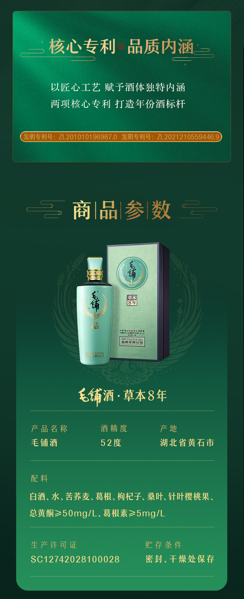 【精装版】52°毛铺草本8年500ml