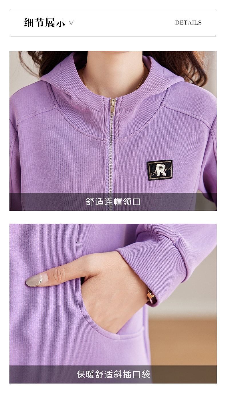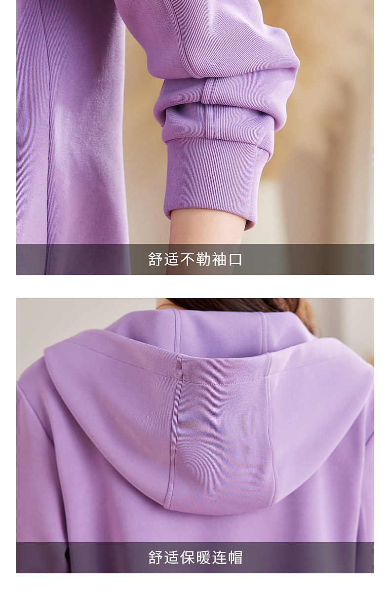 紫色德绒连帽卫衣女秋冬季新款大码显瘦长袖休闲内搭加绒加厚上衣