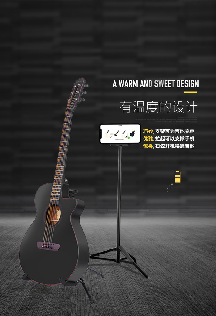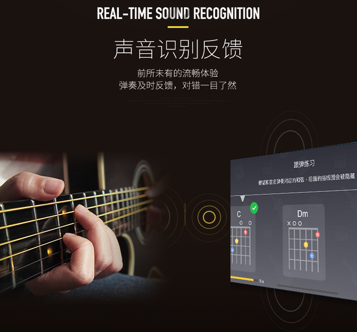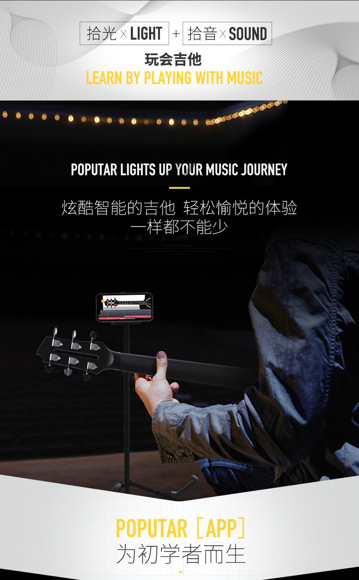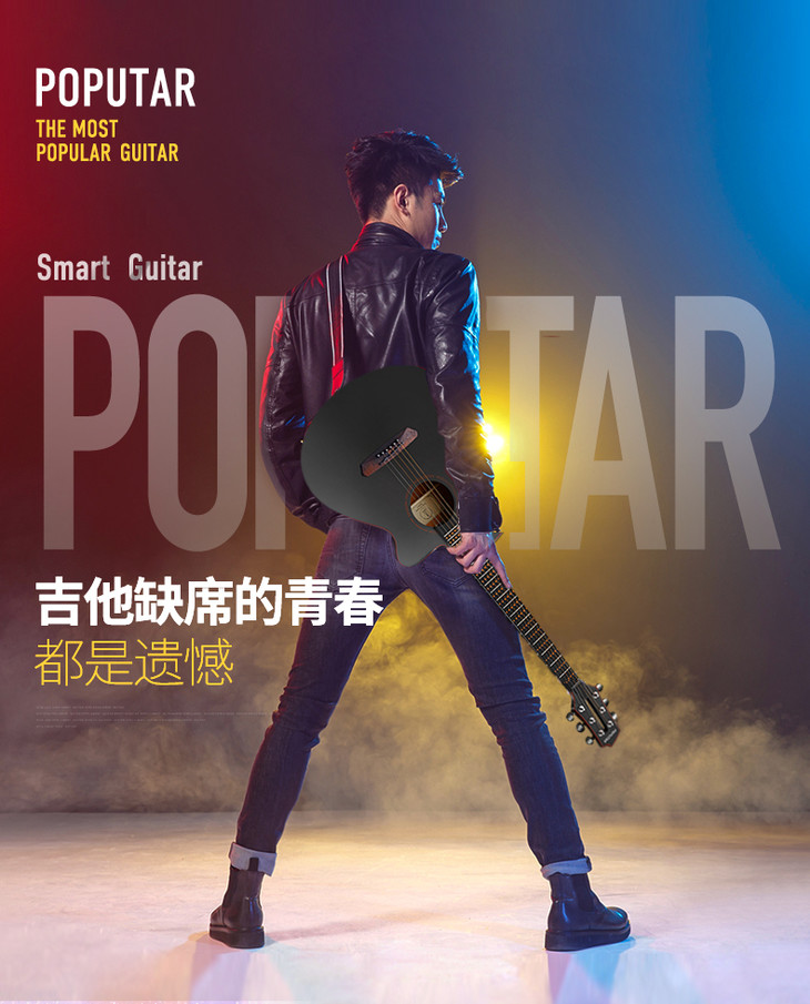 Poputar P1智能吉他初学者女生男生民谣木吉他专用
