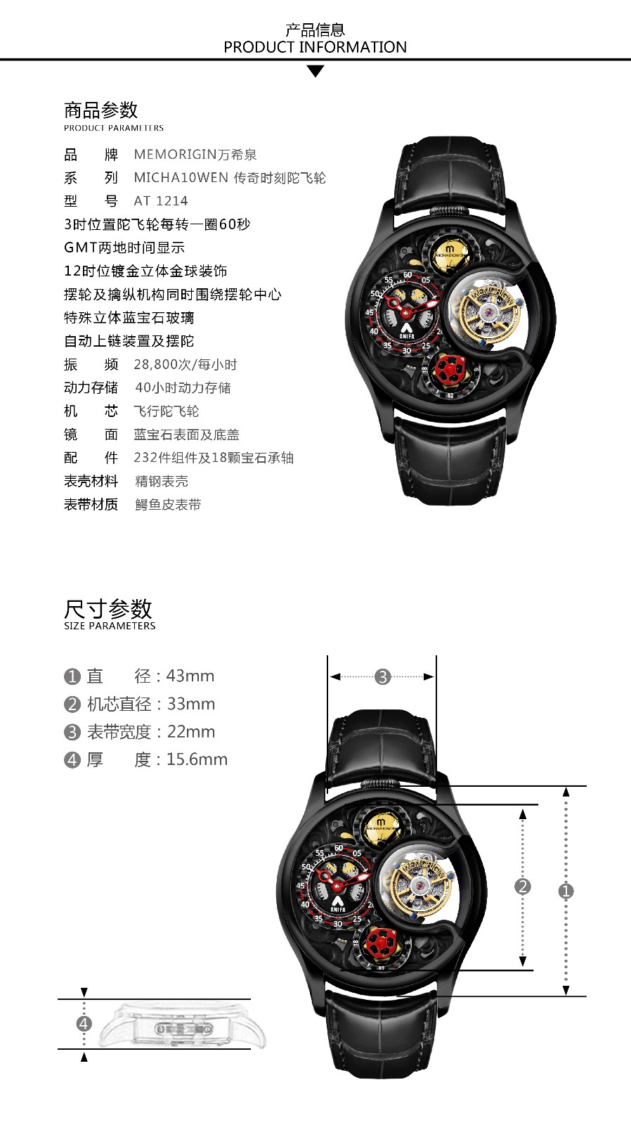 MEMORIGIN万希泉MICHAE1OWEN传奇时刻镂空腕表男士陀飞轮机械手表