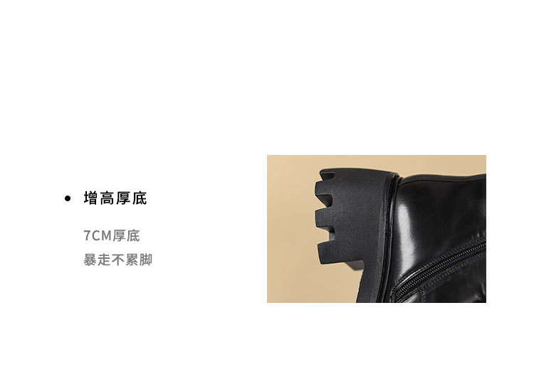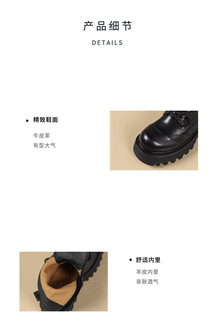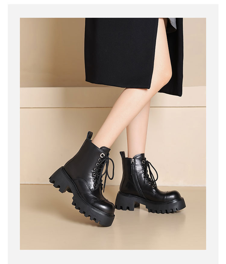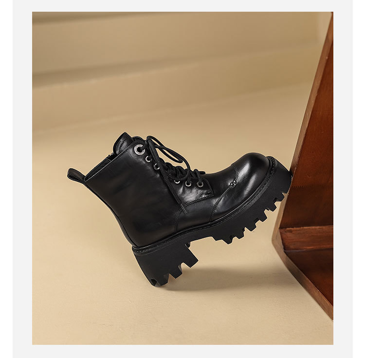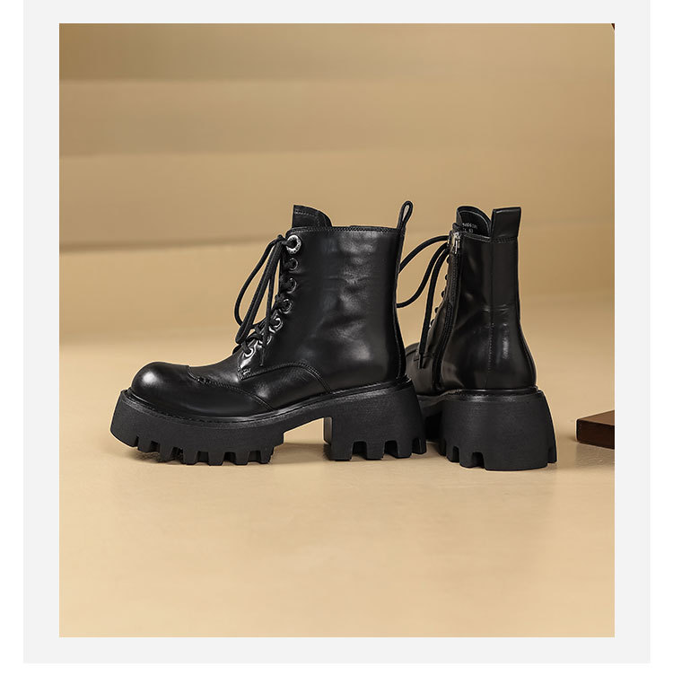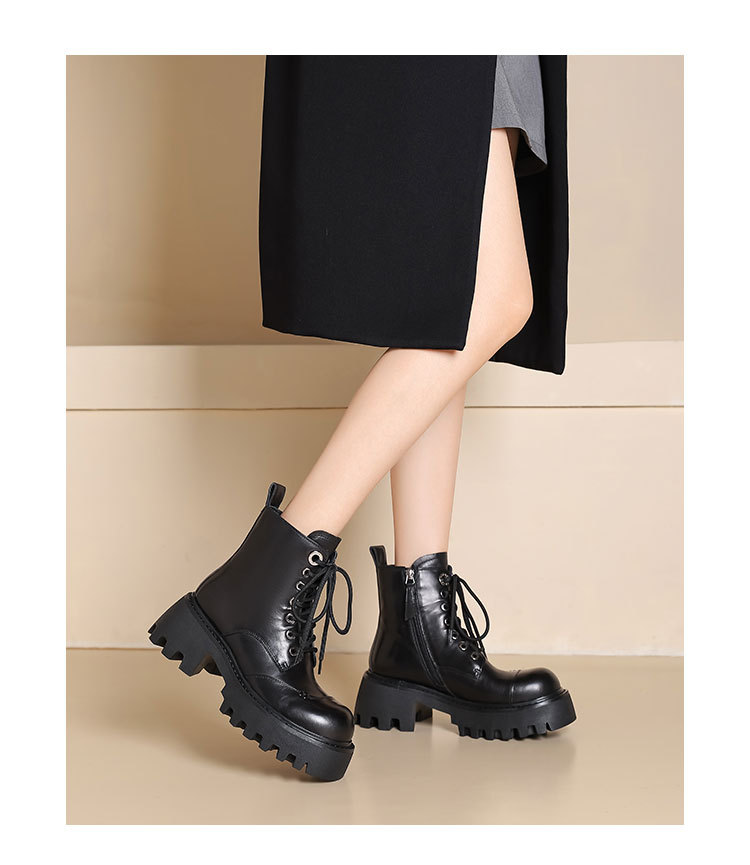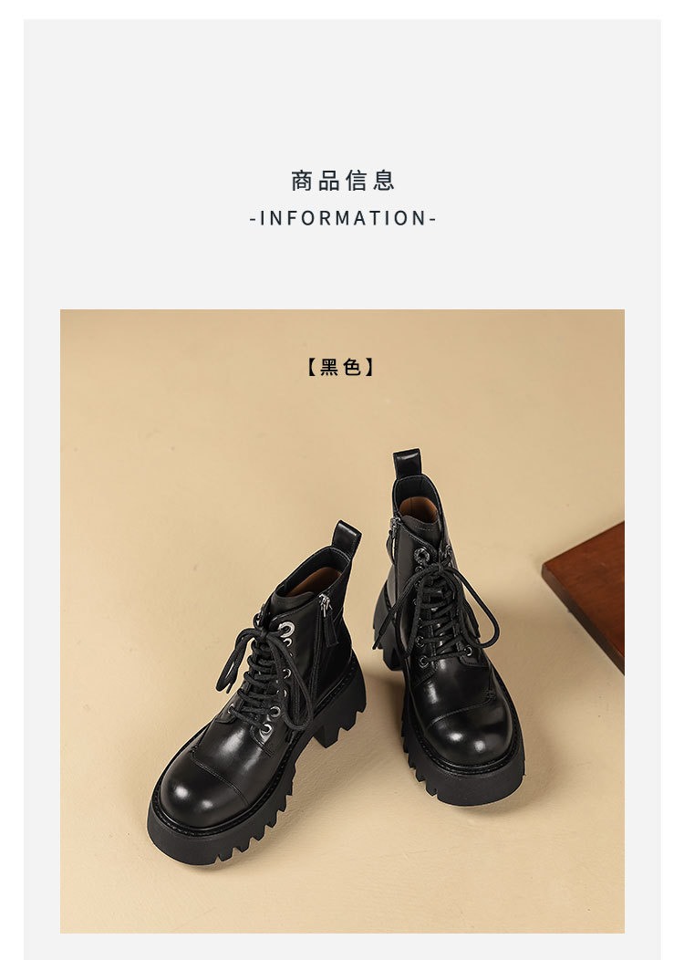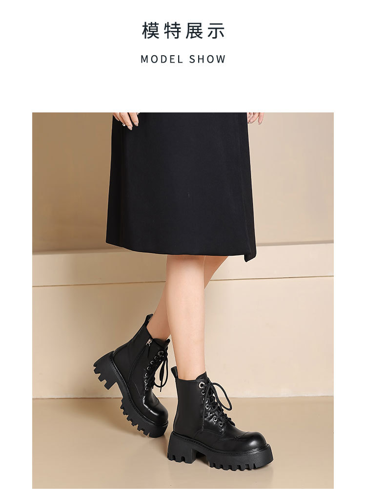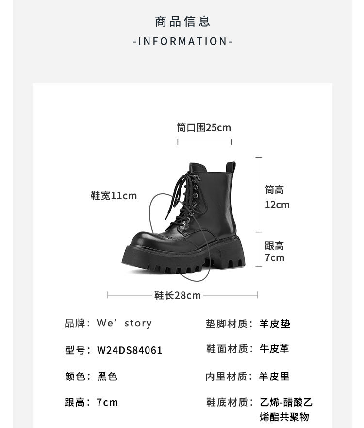 westory2024年秋冬新款优雅风厚底高跟小圆头百搭短靴马丁靴W24DS84061