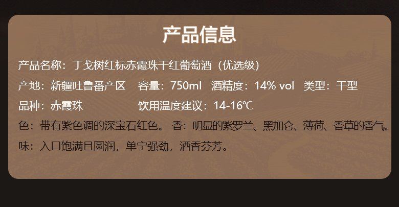 丁戈树红标赤霞珠干红葡萄酒(优选级)750ml*6整箱装