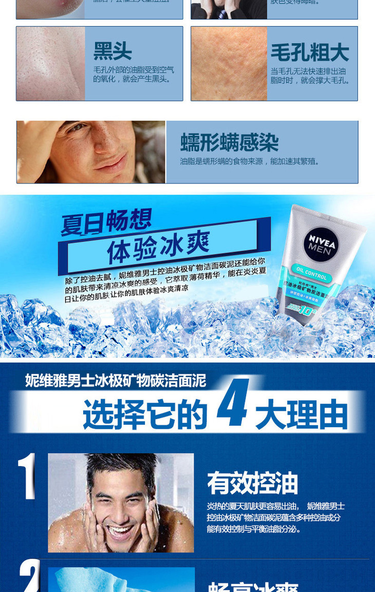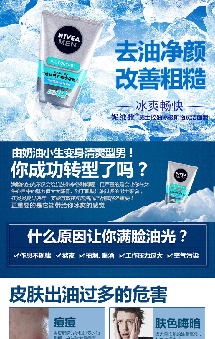 妮维雅男士控油冰极矿物炭洁面泥