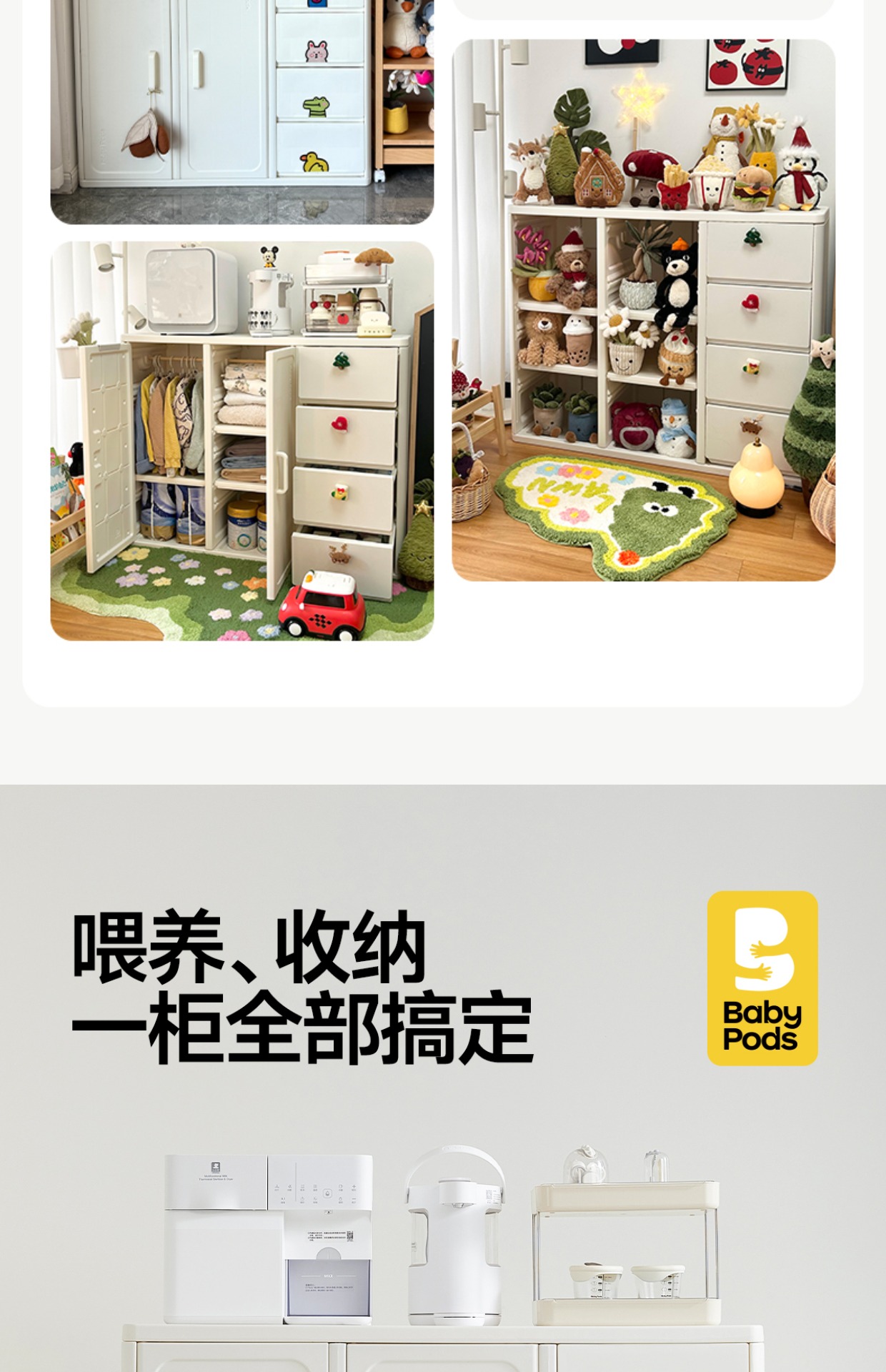 【云优选】babypods喂养台宝宝收纳柜婴儿用品置物架儿童衣柜玩具收纳储物柜(不支持七天无理由,介意慎拍)