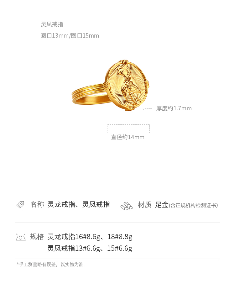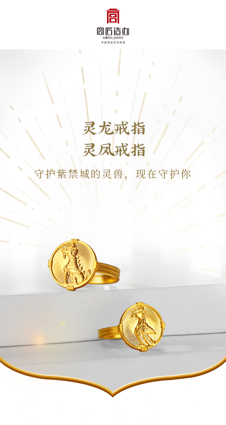 宫匠造办 灵龙灵凤黄金戒指