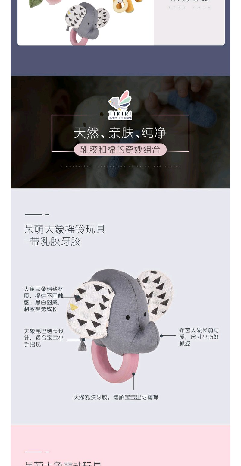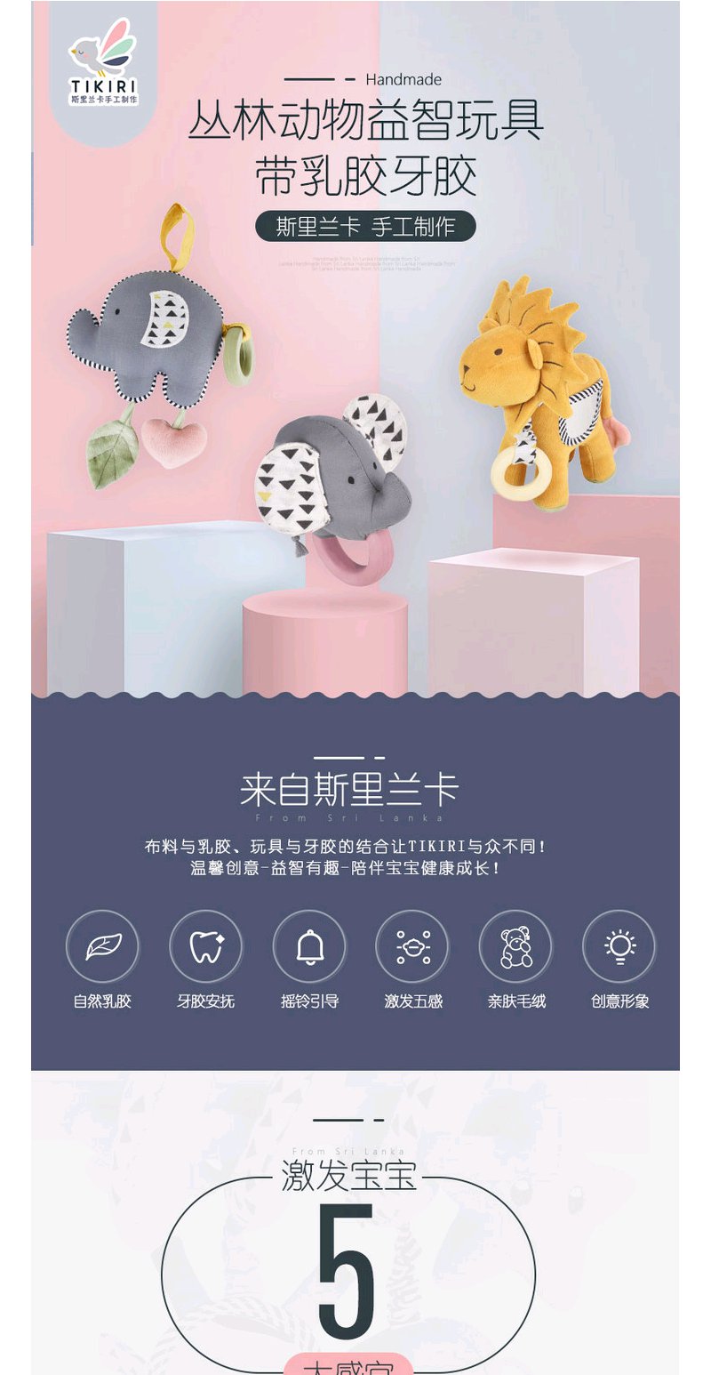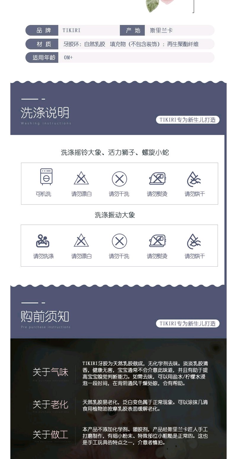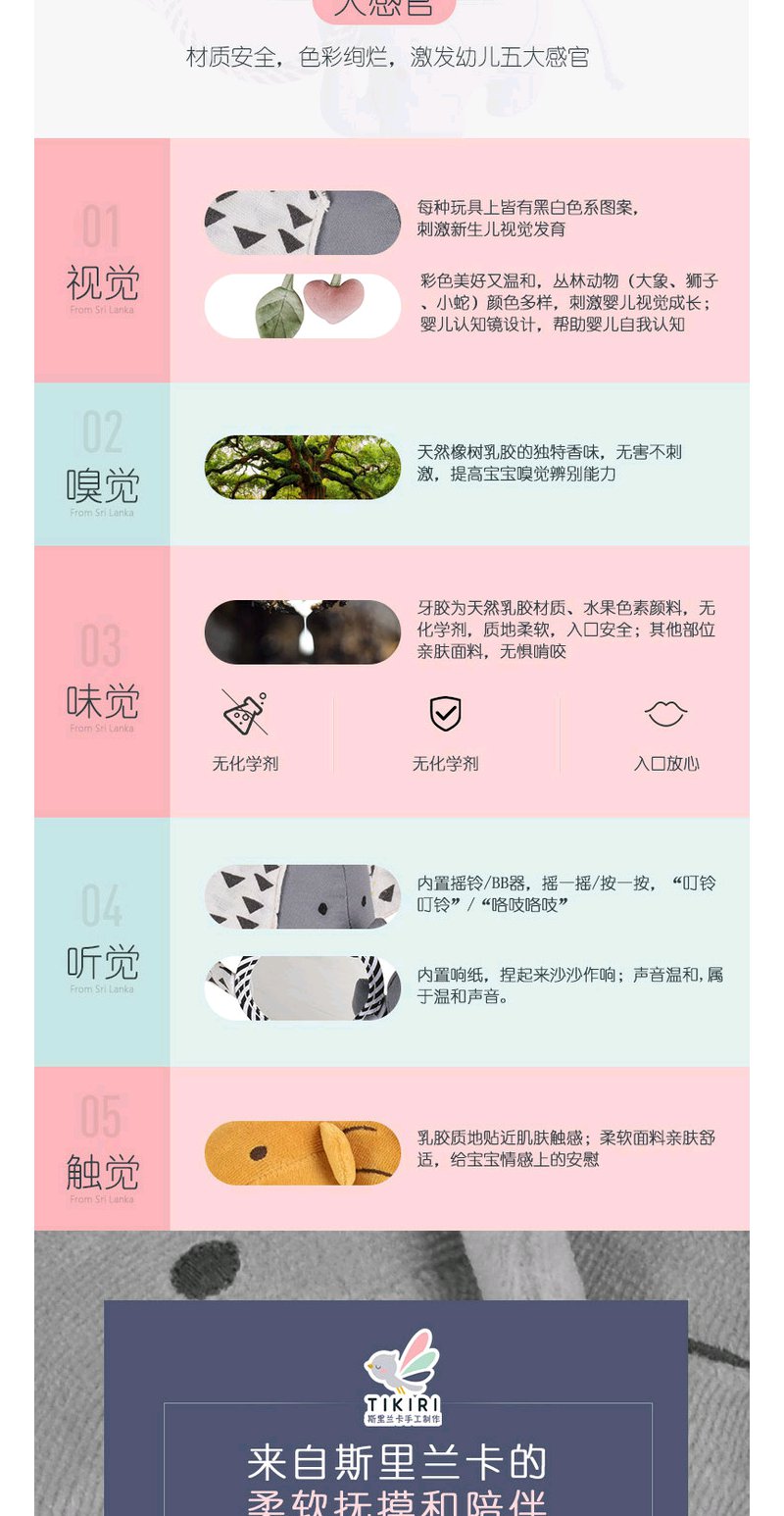 tikiri斯里兰卡进口丛林系列牙胶摇铃缠绕玩具