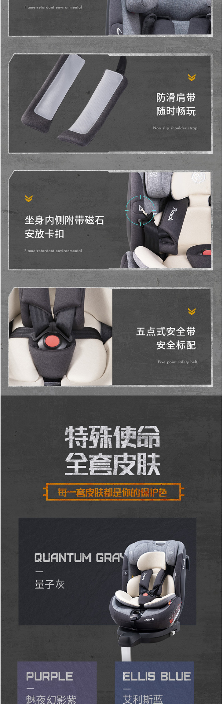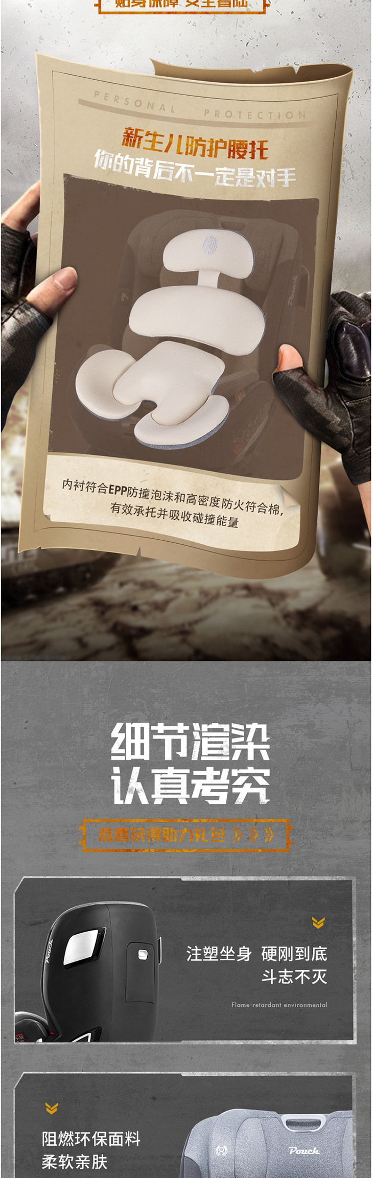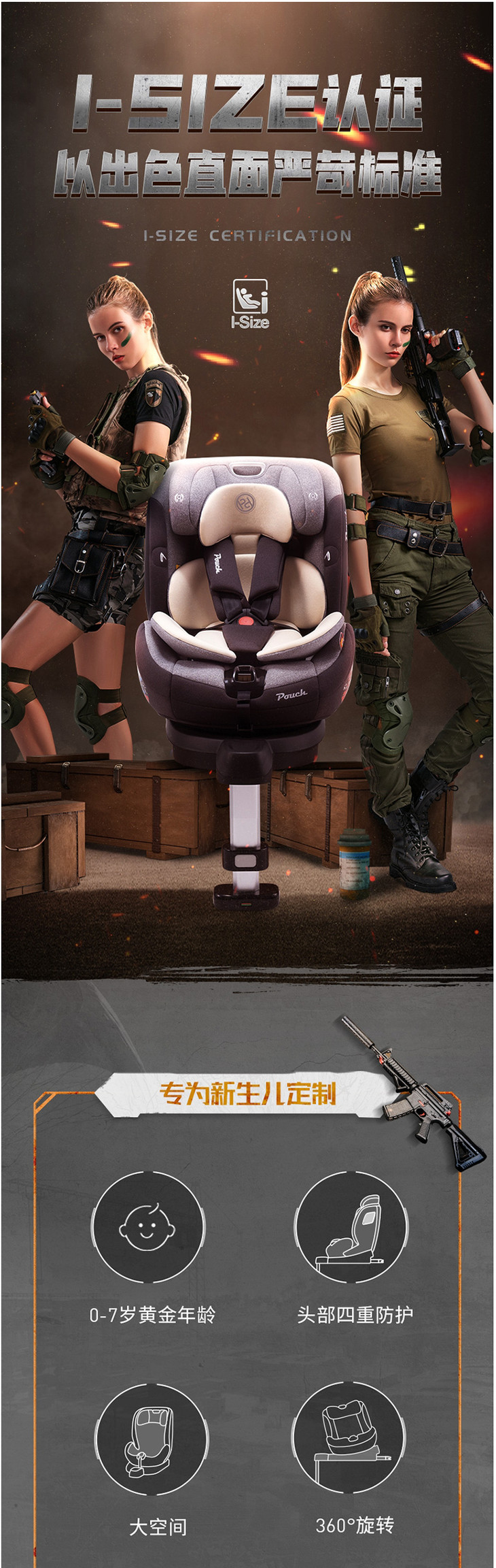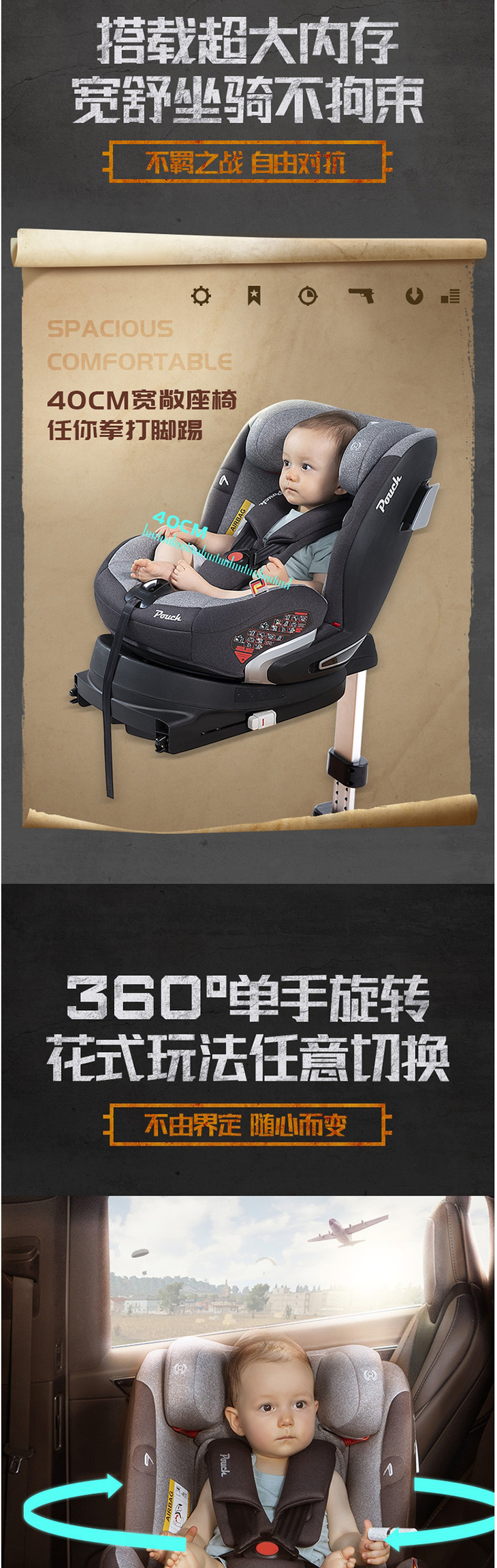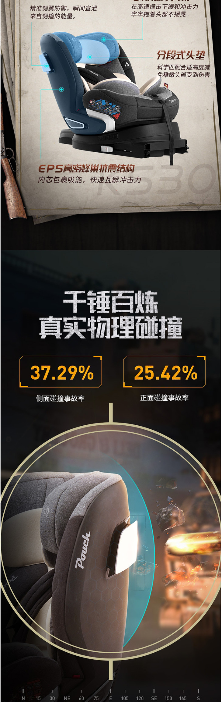PouchKS30儿童安全座椅婴儿360度旋转0-7岁宝宝婴儿一体注塑汽座FX