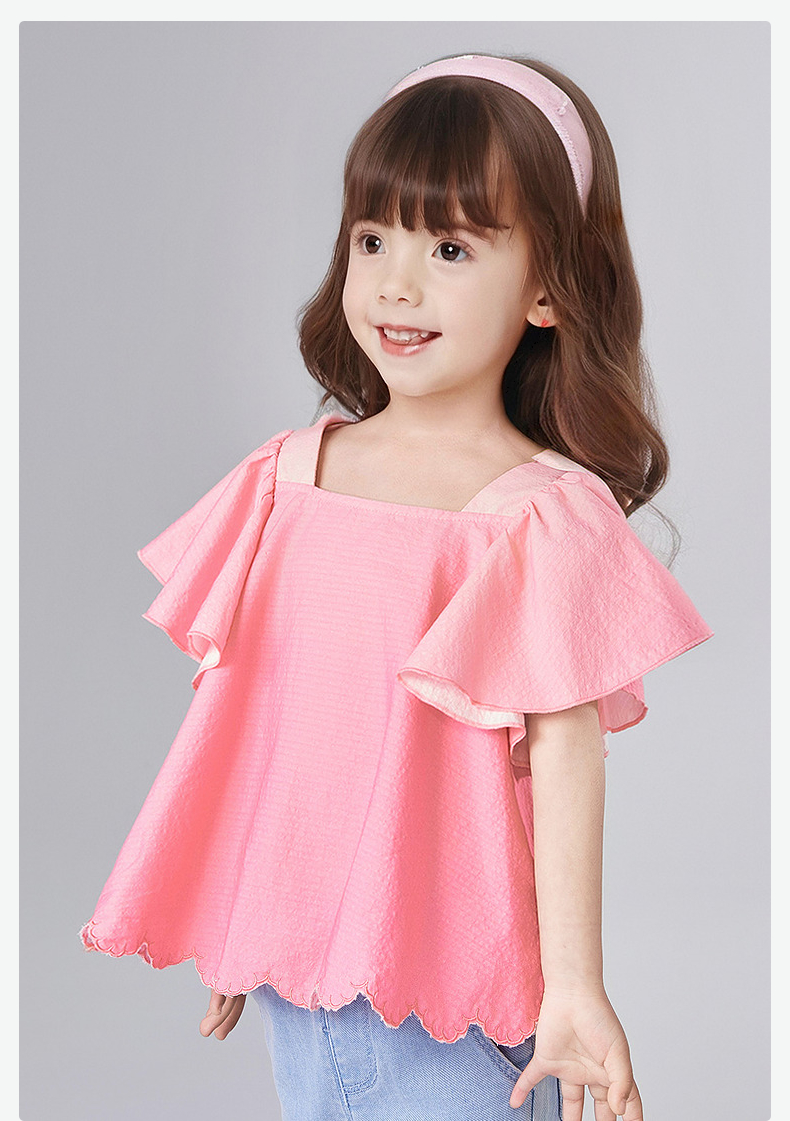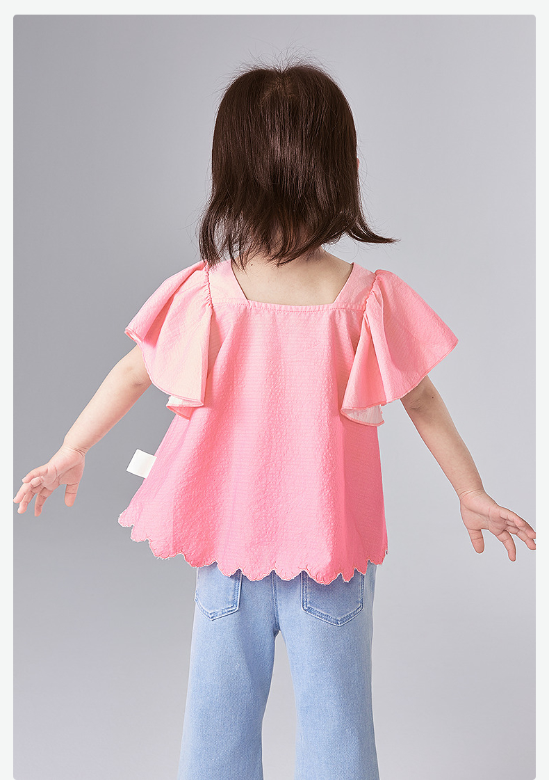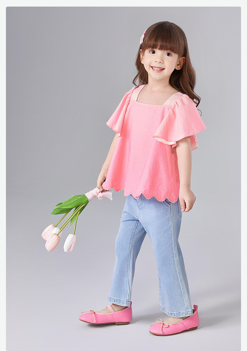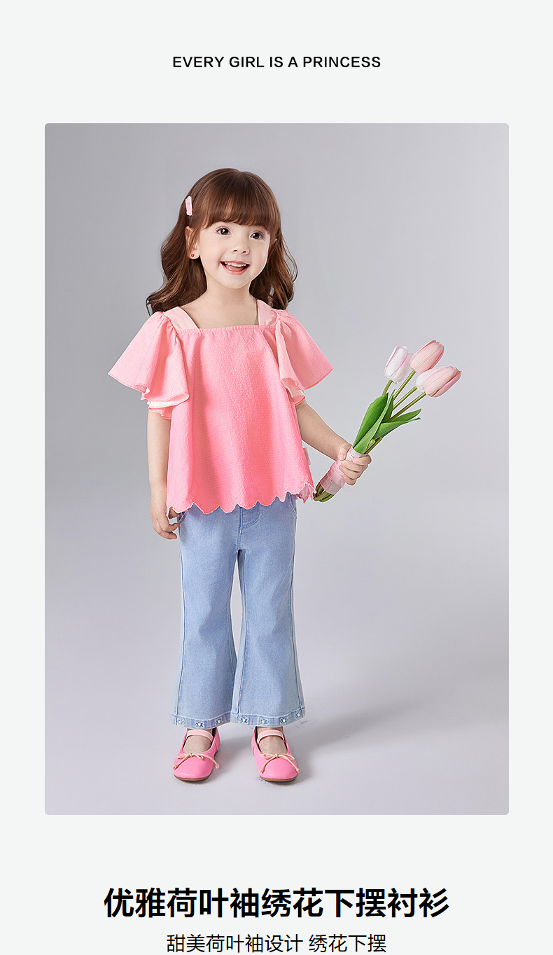 笛莎Deesha 童装女童衬衫2025夏新款女童优雅荷叶袖绣花下摆衬衫