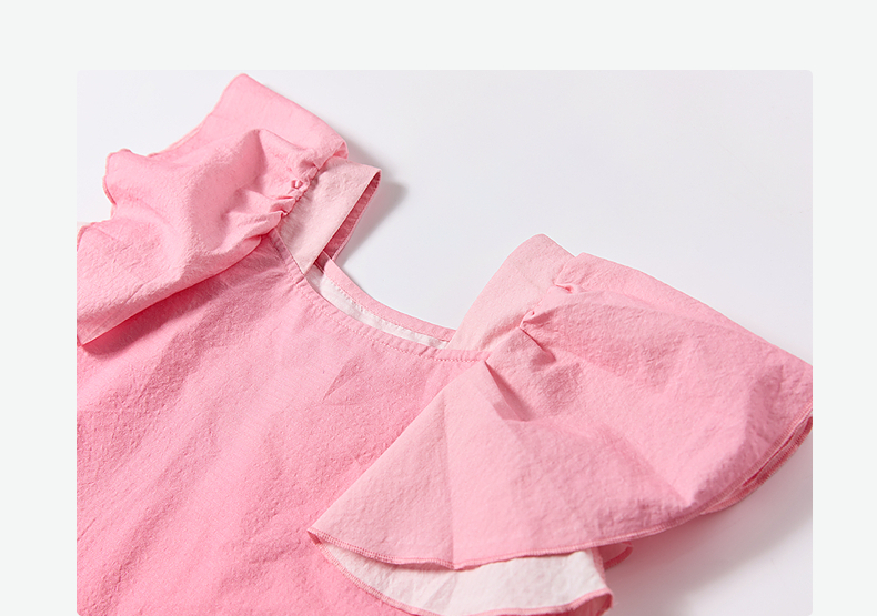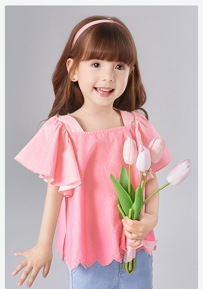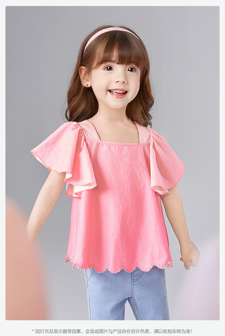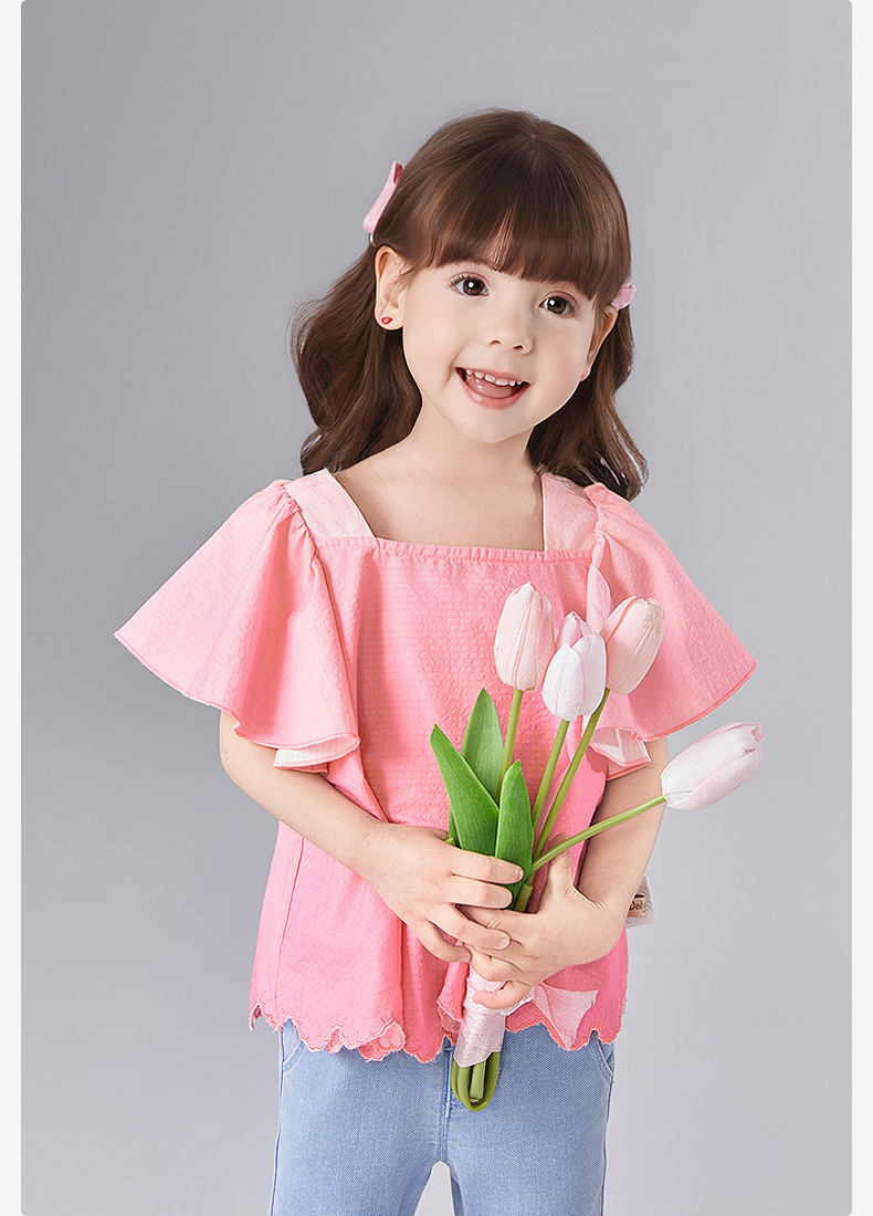 笛莎Deesha 童装女童衬衫2025夏新款女童优雅荷叶袖绣花下摆衬衫